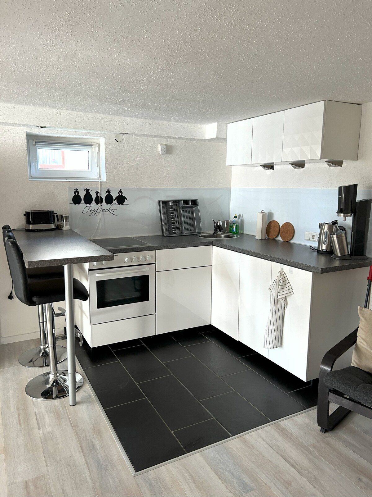 Siéntate y relájate en este alojamiento tranquilo y elegante. Perfecto para parejas, viajeros de negocios y familias, nuestro moderno refugio con dos habitaciones, cocina y baño ofrece todo lo que necesitas. Disfruta de un buen expreso en tu terraza privada y de la tranquilidad del entorno rural, sin dejar de tener a mano todos los servicios importantes. Disfruta de la combinación perfecta de confort y naturaleza y déjate cautivar por la belleza de la vida rural.