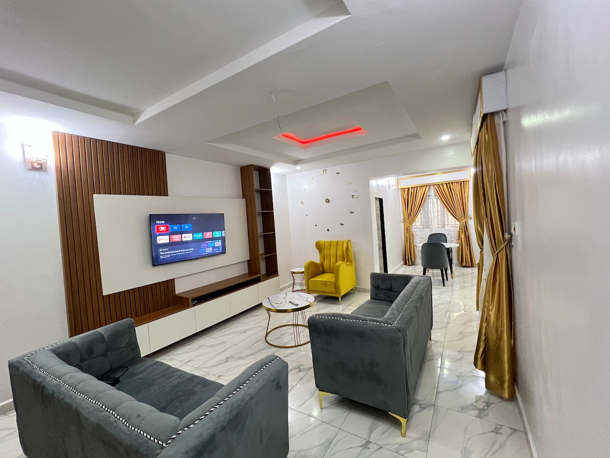 Este exquisito y lujoso apartamento con servicios está cuidadosamente escondido de la ciudad, pero accesible al centro de la ciudad. Tiene una ubicación céntrica con todas las comodidades exclusivas y el sistema de suministro de energía, como un inversor instalado y un generador que nunca falla en la alimentación de la unidad de refrigeración 12 horas por día. ofrecemos servicios de lavandería por un cargo adicional, pero el planchado es gratis. está a diez minutos de lugares como el centro comercial Novare, donde encontrarás Génesis Cinema, Shoprite, spa, barbería,restaurante,etc.