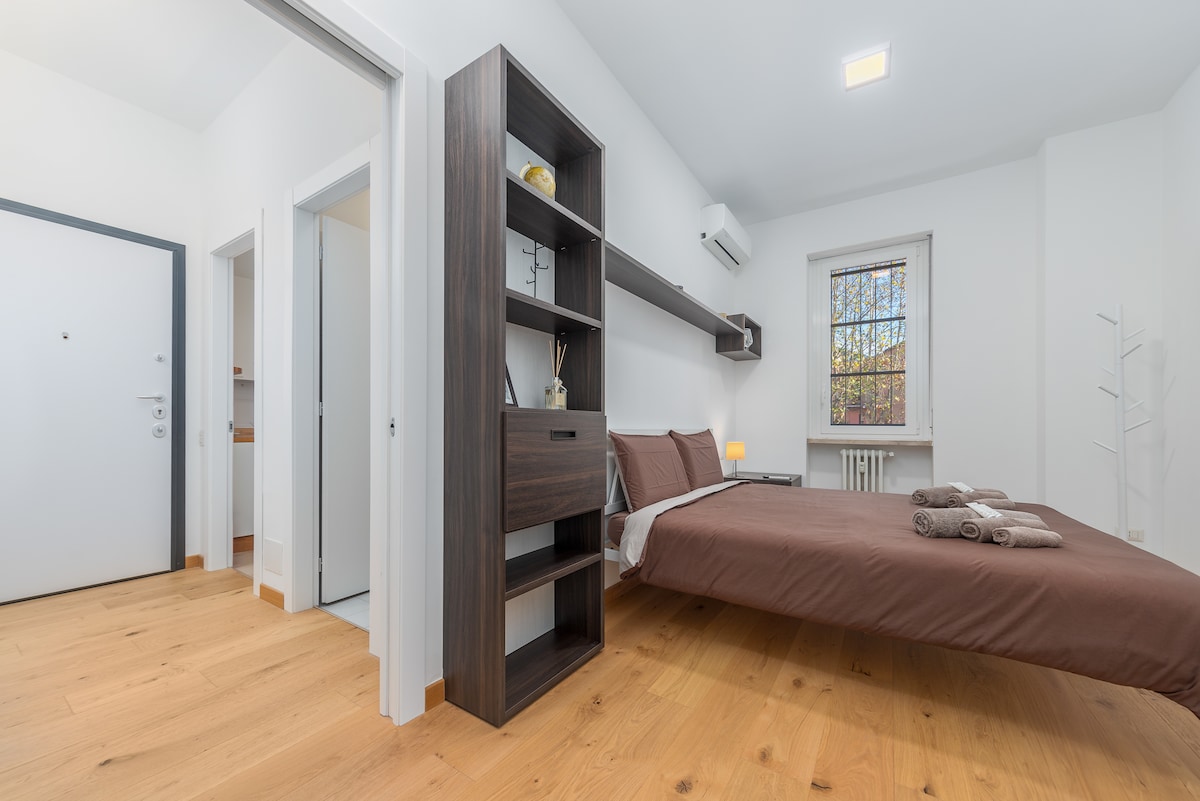 Apartamento de dos habitaciones accesible a pie desde restaurantes y locales ☞ Aparcamiento privado gratuito (en el lugar) ☞ Acceso con seguridad 24/7 ✭“Zona tranquila con seguridad privada, te sientes como en casa” ☞ Balcón ☞ Habitación con cama King Size ☞ Cocina completamente equipada ☞ Baño con ventana ☞ Lavandería 》A 5 min a pie del metro (M5 - ISTRIA) 》20 min en metro (sin cambiar de línea) al estadio de San Siro Guarda mi anuncio haciendo clic en ❤️ en la esquina superior derecha.