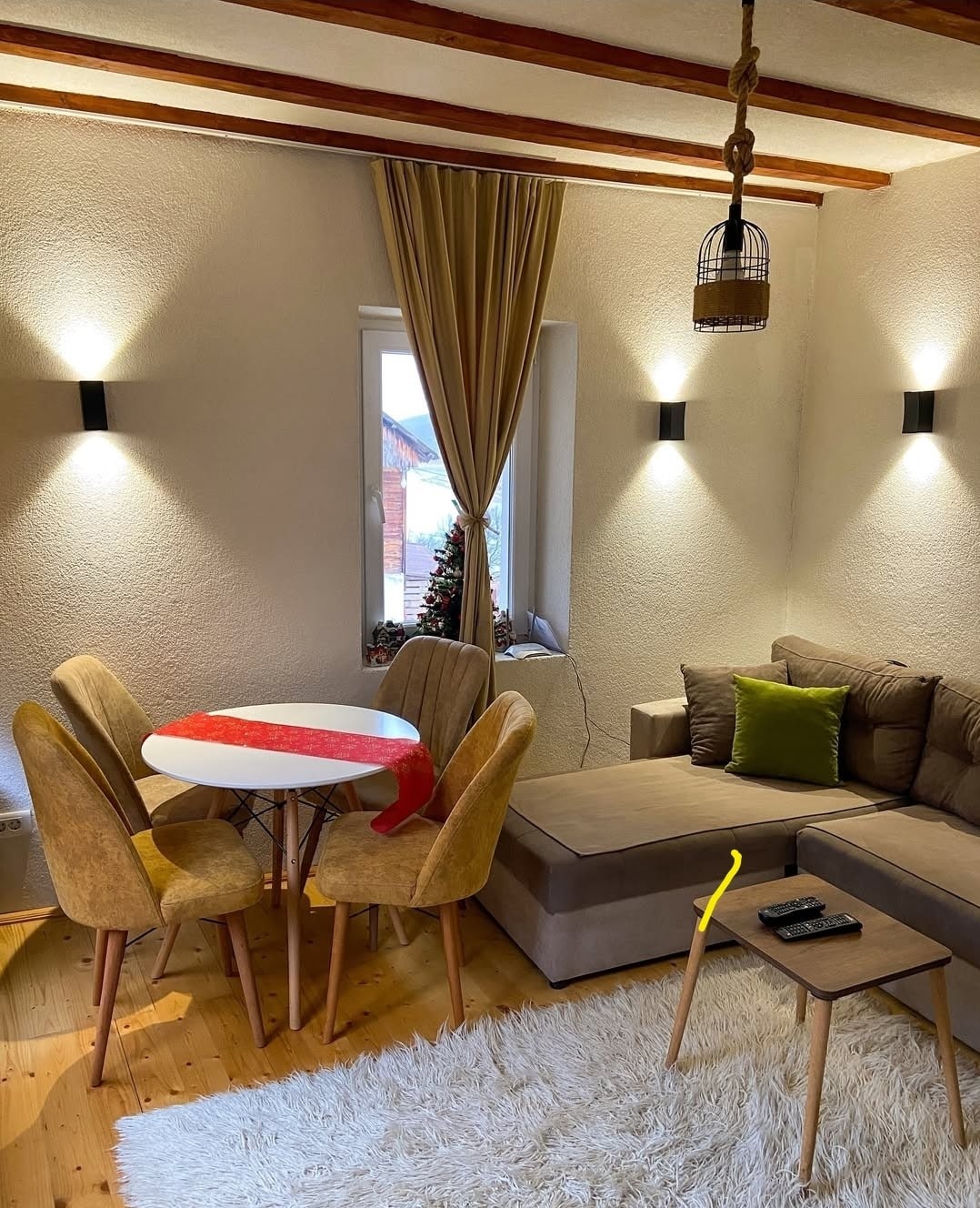 ¡Bienvenido a tu tranquila escapada a la montaña! Este acogedor apartamento combina el encanto rústico con el confort moderno, con paredes de piedra, vigas de madera y muebles únicos hechos a mano por un maestro carpintero local. Ubicado en lo alto de las montañas, el balcón es perfecto para disfrutar de tu té por la mañana en tranquilidad. Rodeado de un bosque de hoja perenne, estás a solo 10 minutos a pie de restaurantes, campos deportivos, senderos para bicicletas y pistas de esquí. Es el refugio ideal tanto para los amantes de la naturaleza como para los aventureros.