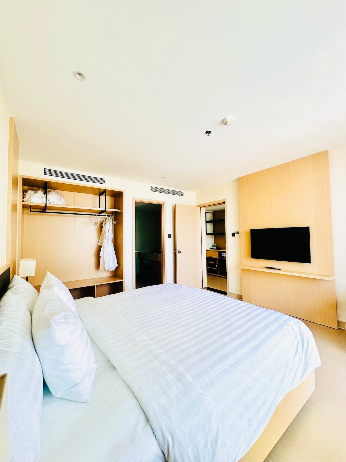 Mayhome se encuentra justo en el concurrido centro de la ciudad de Phan Rang; con vistas a la ciudad; a solo 3 km de la playa. El apartamento incluye 1 dormitorio y 1 inodoro con amplia sala de estar y espacio de cocina. El departamento está totalmente equipado con electrodomésticos y utensilios para que disfrutes de tu estancia más cómoda. Nota: 1/ La unidad tiene aire acondicionado en el dormitorio y ventilador en la sala de estar. 2/ Para reservaciones de más de 14 días, la electricidad utilizada por los huéspedes durante la estancia se cobrará por separado, no incluida en la tarifa de la habitación.