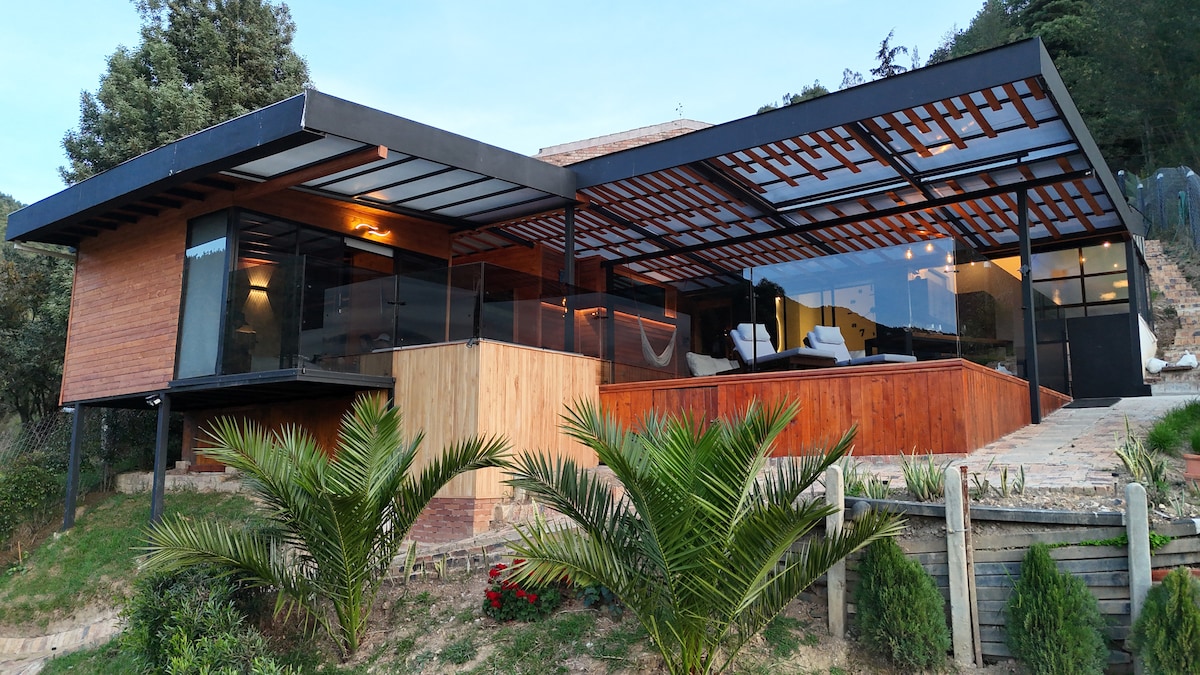 Amanecer con vista espectacular, café y aves cantando todo el tiempo. A pocos minutos de los lugares más turísticos de Boyacá, es un lugar con todas las comodidades sin desconectarse de la tecnología y del trabajo, Jacuzzi volado con vista y un sauna amplio. Puedes encontrar hasta un Viñedo a cinco minutos y los demás planes turísticos como para salir durante el día y volver a relajarse en esta minihouse. Reserva pronto ya que es muy solicitada.