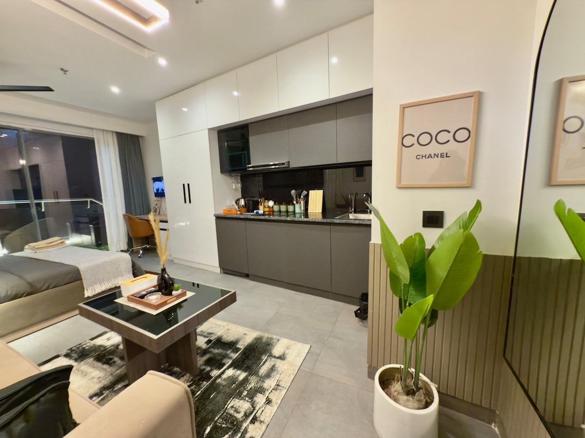 Introducing our exquisite luxury studio apartment: Nestled in the heart of the city, this opulent studio boasts modern elegance and unparalleled comfort. The open-concept design invites you into a spacious haven, bathed in natural light from the large windows that offer breathtaking city views. This apartment is on the 41st floor in one of the tallest sky scraper in Delhi - NCR. The apartment has a river facing view from the balcony!!