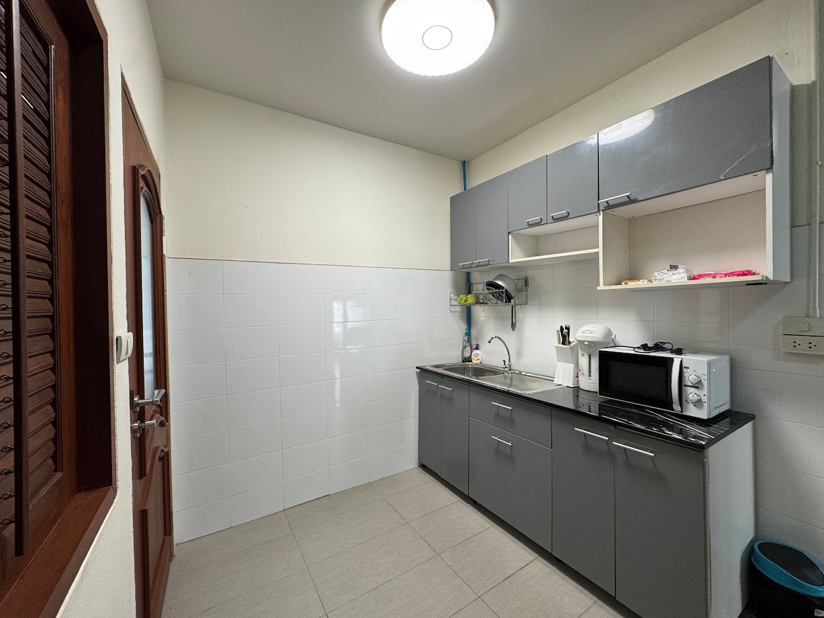 Disfruta de todo el alojamiento privado, perfecto para un máximo de 6 huéspedes. Ubicado a solo 1 minuto a pie de la estación de MRT Tao Poon, ofrece la máxima comodidad. La casa cuenta con dos dormitorios con cómodas camas de 5 pies, dos baños y una cocina totalmente equipada. Rodeado de amables vecinos tailandeses, tiendas y vibrantes bares locales, experimentarás la auténtica vida de Bangkok con comodidad y facilidad.