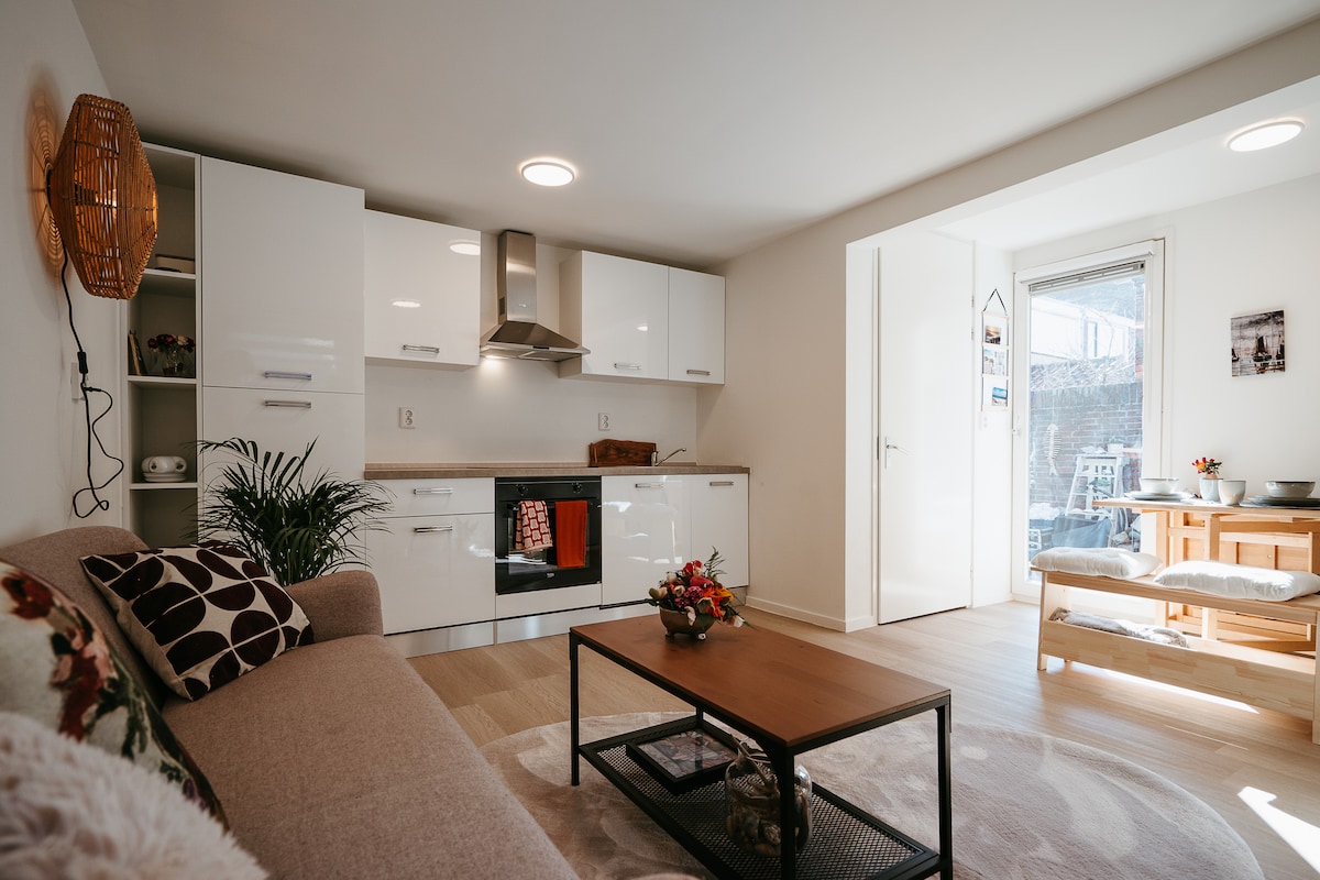 Estudio agradable y luminoso con una cama cómoda, cocina limpia, ducha y aseo. Uso del jardín con una pequeña zona de estar. - Aparcamiento público gratuito a 100 metros de la casa - Ubicado en el centro del casco antiguo de Noordwijk aan Zee - A 5 minutos a pie de la playa, las dunas, la panadería, la calle comercial y el supermercado. - Muchos lugares de interés cerca, a 30 minutos de Ámsterdam, La Haya, Haarlem y Leiden. - ¡Muchos consejos locales para una estancia estupenda!