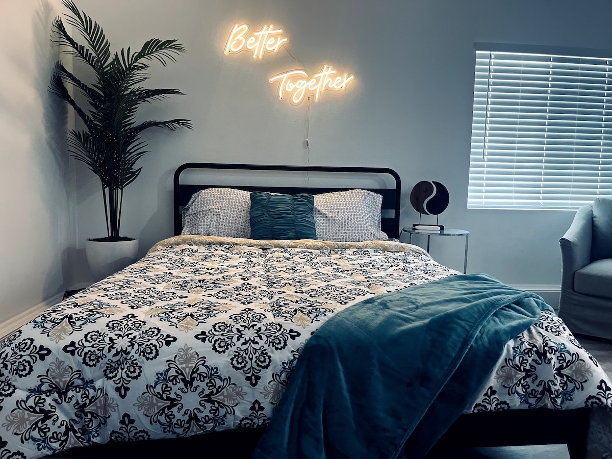 Disfruta de una experiencia elegante en este lugar céntrico. Situada en la hermosa comunidad de Riverside, el tranquilo espacio privado incluye un dormitorio de diseño simplista con baño privado. El estudio tiene una cama tamaño queen muy cómoda y relajante, un televisor (Netflix incluido) y un área de refrigerio elegante que demuestre un microondas, un refrigerador y un Keurig para tu conveniencia.