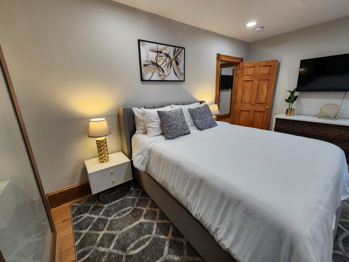 ¿Buscas un lugar en el que te sientas como en casa? Lo has encontrado en @ThePuddingstone. Este apartamento de 3 dormitorios recién reformado es justamente ese lugar. Este espacio cuenta con carpintería artesanal en todas partes y ventanas de vitral para ese toque contemporáneo. Despiértate con el resplandor de la mañana en cómodas camas tamaño queen junto a grandes ventanales. El baño es grandioso, con suelos radiantes, cabezales de ducha tipo lluvia y lavadora y secadora. Idealmente cerca del transporte público para un acceso rápido a museos, universidades, parques y hospitales.