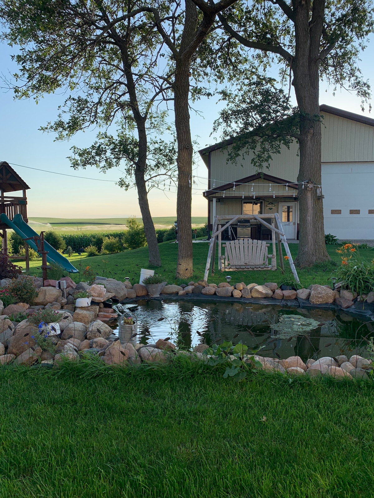 ¡La vida en el campo en su máxima expresión! Situado a 6 millas de Randolph, Ne. ¡Estilo de vida rural bastante tranquilo! ¡Tiene un pequeño estanque en el lugar para tu placer visual y momentos de relajación con un columpio completo para los jóvenes de corazón! ¡Mi cobertizo está climatizado durante los meses de invierno! Para tu información, el dormitorio del loft y la sala de televisión se encuentran arriba de la cocina (¡por favor, trae tu propia comida para las comidas!) y el baño está en la planta baja. ¡Recientemente se ha añadido un sistema de lavadora y secadora! ¡Nuevo aire acondicionado central!