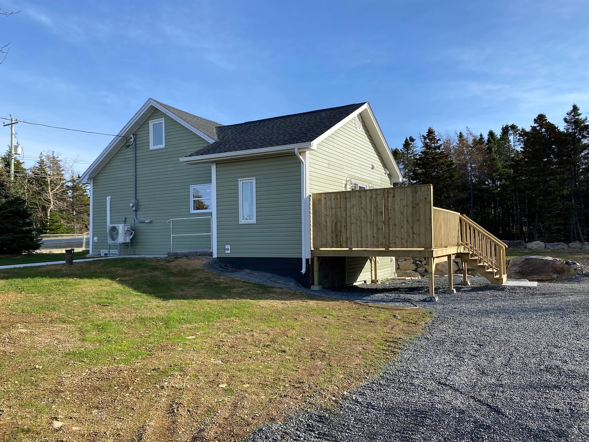 Ten en cuenta que no se añaden gastos de limpieza adicionales y un 10 por ciento de descuento para 5 noches o más. Relájate bajo el porche artesanal cubierto de esta nueva belleza diseñada a medida. La casa cumple todos los requisitos: máxima privacidad, amplia terraza con jacuzzi, techos abovedados con vigas y un rincón de lectura. Situada en South River, cerca de Cupids/Brigus, a pocos pasos del mar y a 7 minutos a pie de la destilería Nl. Estamos a 45 minutos al oeste de St. John's. La elegancia sencilla de esta casa es refrescante para el alma.
