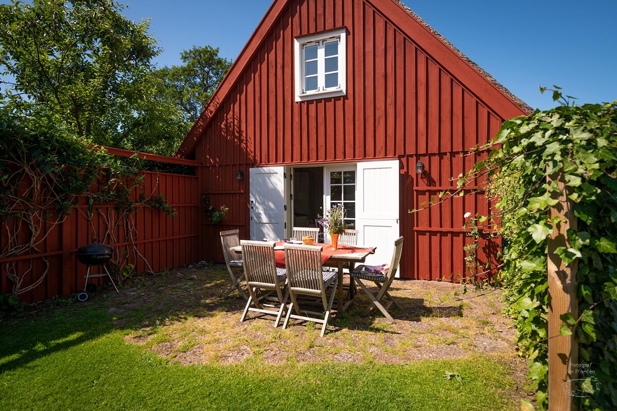 Our private cozy guest cottage located on the most beautiful spot, in the charming old fishing village Svanshall. You will have a glimt of the sea when having breakfast and you are just 1 minute walk from a dip in Skälderviken. If you are here for hiking, Kullaleden is just outside the garden. The cottage is personally decorated with room for 4 persons. One bedroom with a queen sized bed and one sofa bed, double sized.