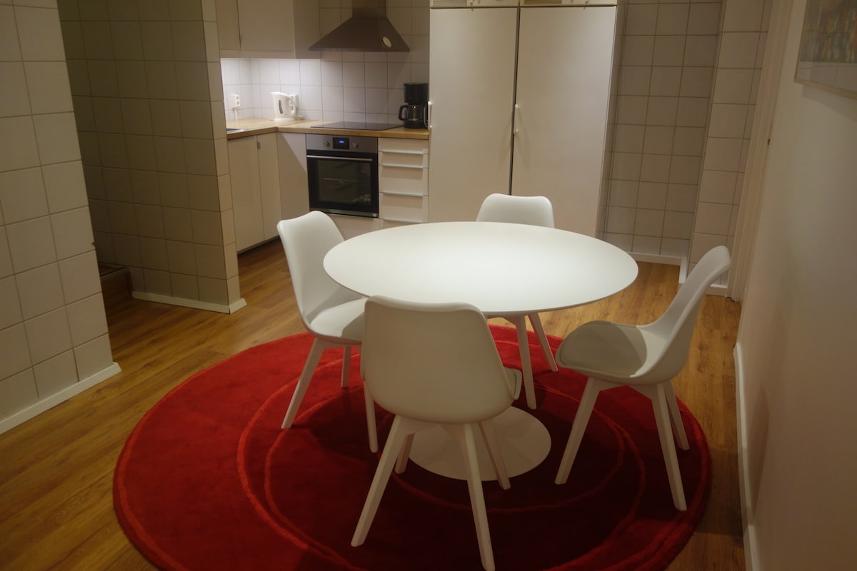 This spacious studio for 3 comes with a fully equipped kitchen, appliances include a large fridge and a freezer, a stove, an oven and microwave oven. Enjoy your homecooked meal at the dining table and relax in front of the TV during the evenings. The bathroom has a shower and lovely underfloor heating. Your stay includes free Wi-Fi, a basic channel selection, bed linen, towels, shower & hand soap, as well as weekly and final cleaning. Enjoy your stay!
