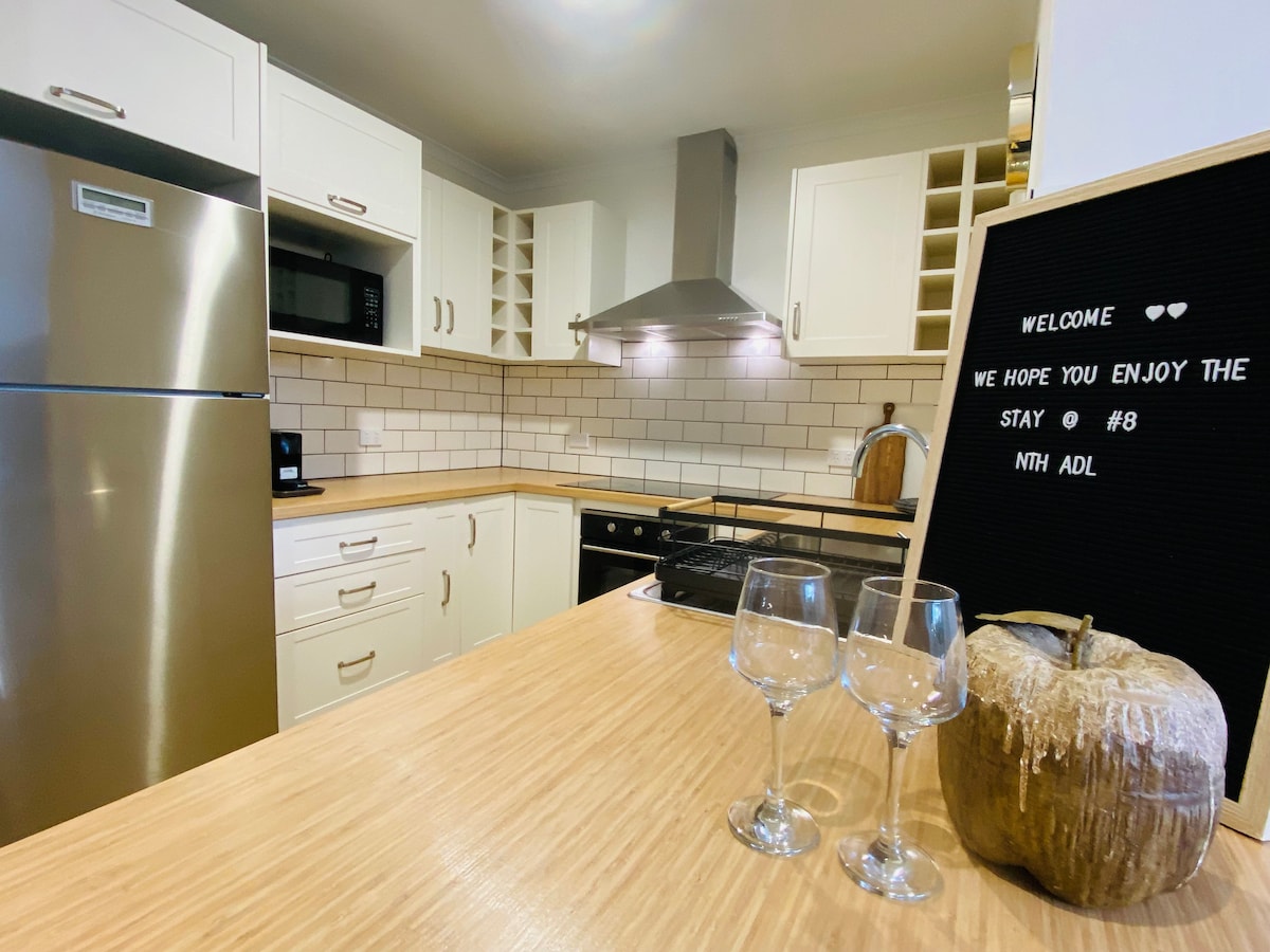 Corazón de North Adelaide, cama king, 2 coches, ubicación ideal