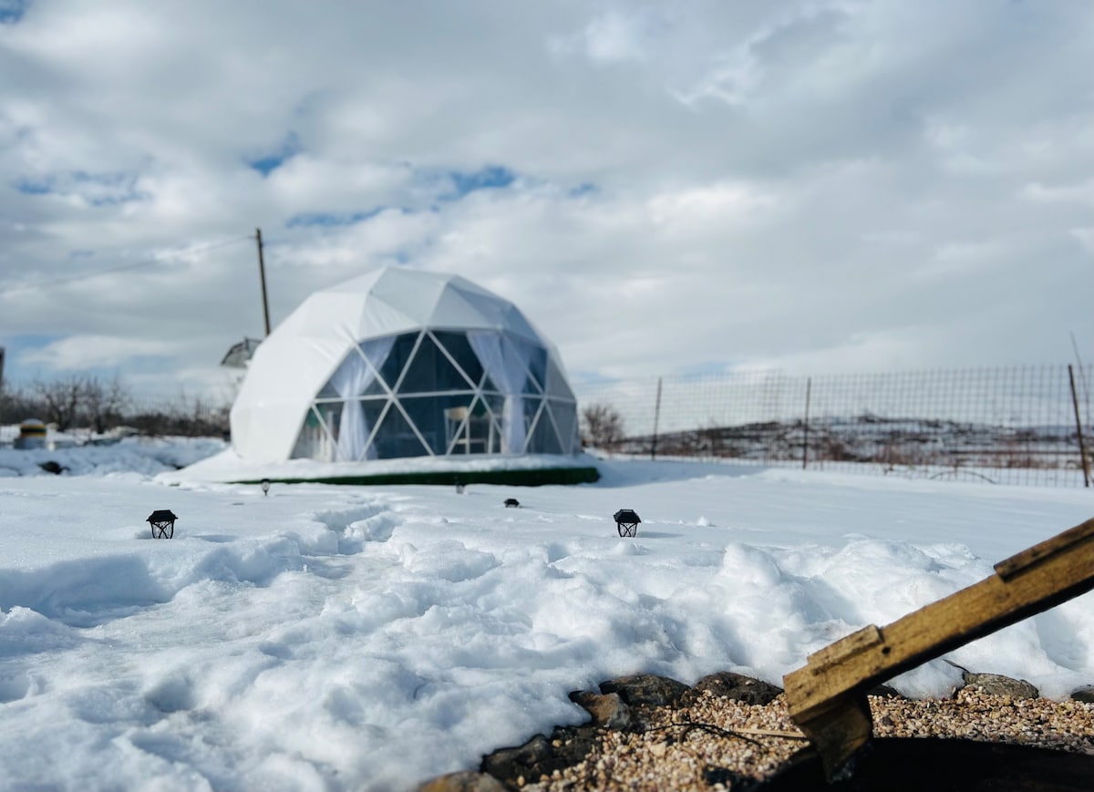 El espacio más especial que hayas conocido: una impresionante cúpula geodésica situada en el borde de una suite de pueblo, cuidadosamente diseñada. La cúpula está climatizada y es adecuada para el alojamiento de una pareja o una familia pequeña: en el centro del espacio hay una cama doble de 1,60 cm de ancho y un televisor inteligente de última generación con canales de TV Netflix y una variedad de aplicaciones. Por encima de la cama, un piso de galería infantil apto para 2 niños. Nuestra cúpula geodésica es una zona de cocina totalmente equipada con estufa de gas, nevera, utensilios para cocinar y servir, esquina de café, microondas y varios armarios de almacenamiento. En el complejo del patio común: piscina climatizada y cubierta, ¡y spa en la bañera de hidromasaje!