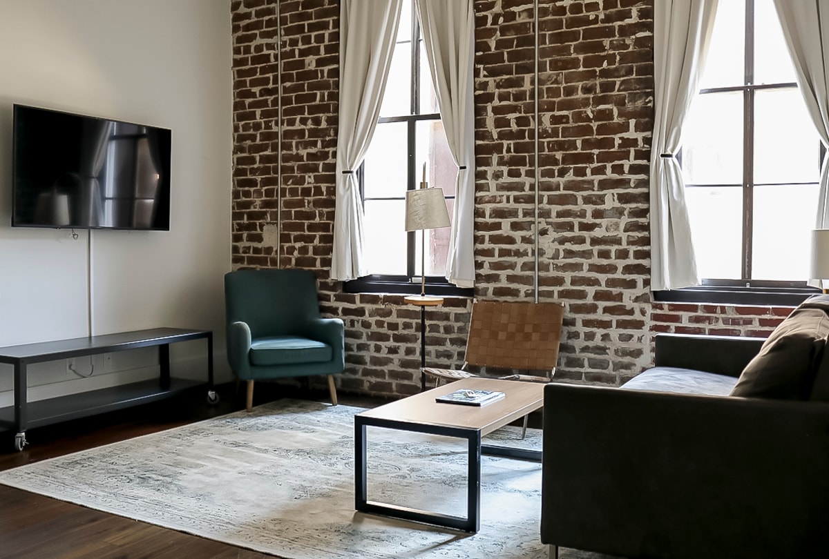 Encantador estudio situado en el corazón del distrito histórico. Ubicado a solo unos pasos de muchas de las mejores atracciones, boutiques y restaurantes de Savannah. El espacioso interior está equipado con cocina completa, baño completo, vestidor y sala de estar. Los acabados modernos, como las encimeras de granito, se mezclan a la perfección con las paredes de ladrillo visto. Aparcamiento en la calle disponible, además de dos garajes cercanos. Planta superior (con uso de ascensores) frente a la bulliciosa calle Broughton.