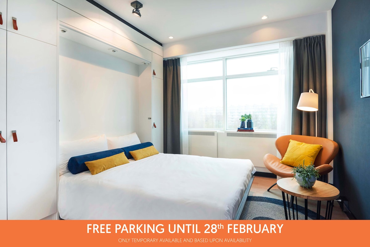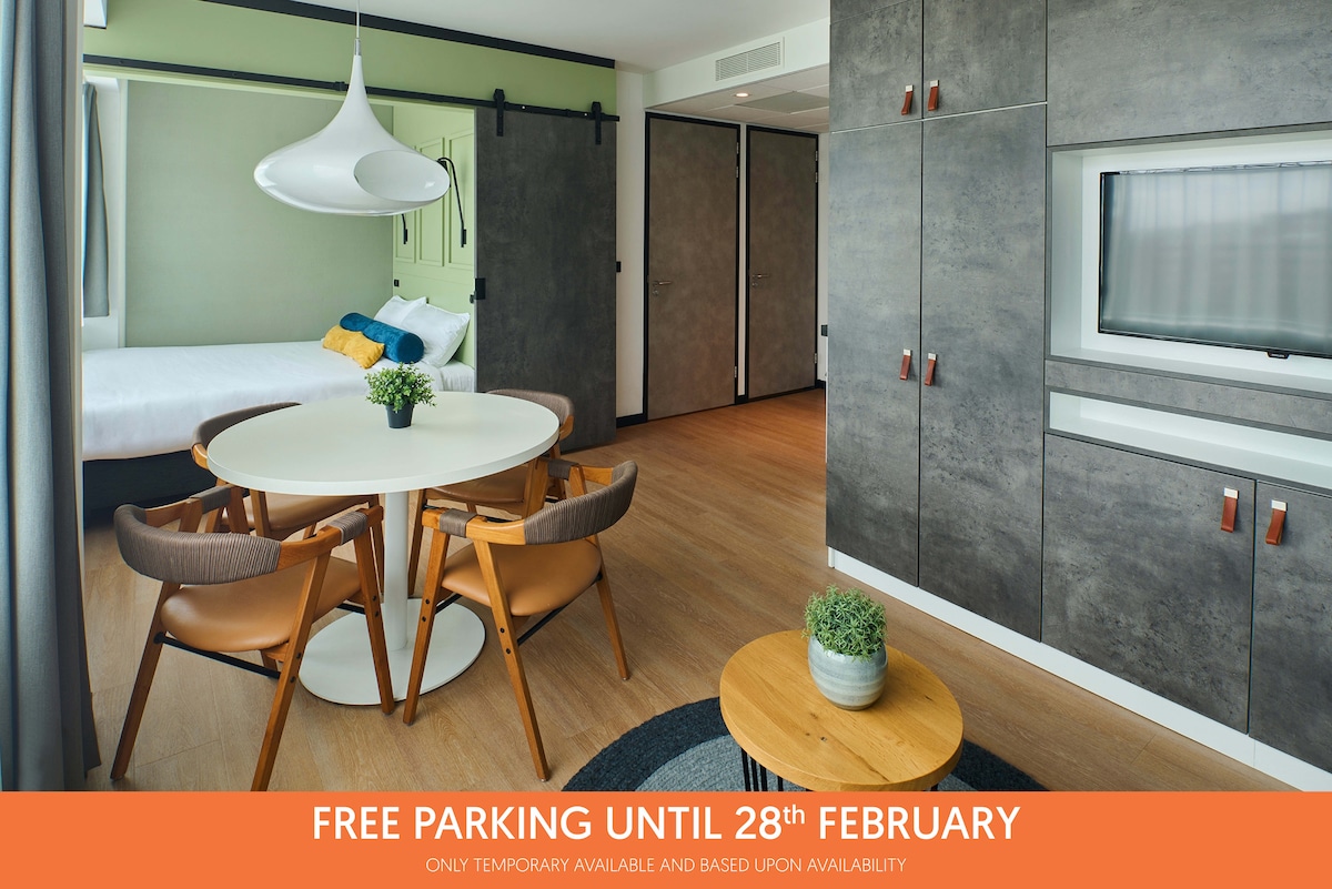Amrath Apart-Hotel Schiphol is an 'extended stay' hotel that offers 98 studios and apartments starting from 6 nights and longer. The Apart-Hotel is located in Badhoevedorp, a versatile area near the Amsterdamse Bos, Schiphol Airport and Amsterdam. Indulge in various flavors at our own 24/7 mini supermarket for all day-to-day groceries, and for those who love to cook, we offer an induction stove with pots and pans rental option. Out lounge is allows for flex work, meetings or simply relaxing. All our guests have free high speed Wi-Fi available, parking options and can use our spacious fitness, gaming room and free laundry facilities.