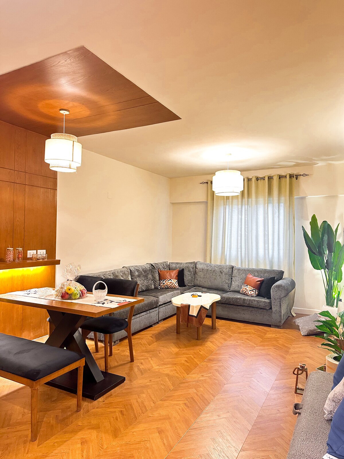 Apartamento de lujo de primer uso en Al Rehab Sé el primero en vivir en este apartamento de alta gama recién terminado en una ubicación privilegiada de Al Rehab, frente a Souq El Adeem con hermosas vistas al jardín. Cuenta con una suite real, un dormitorio principal con un vestidor y un baño privado, que se asemeja a una suite de hotel. Disfruta de Netflix, WiFi de alta velocidad y acceso al ascensor para la máxima comodidad.