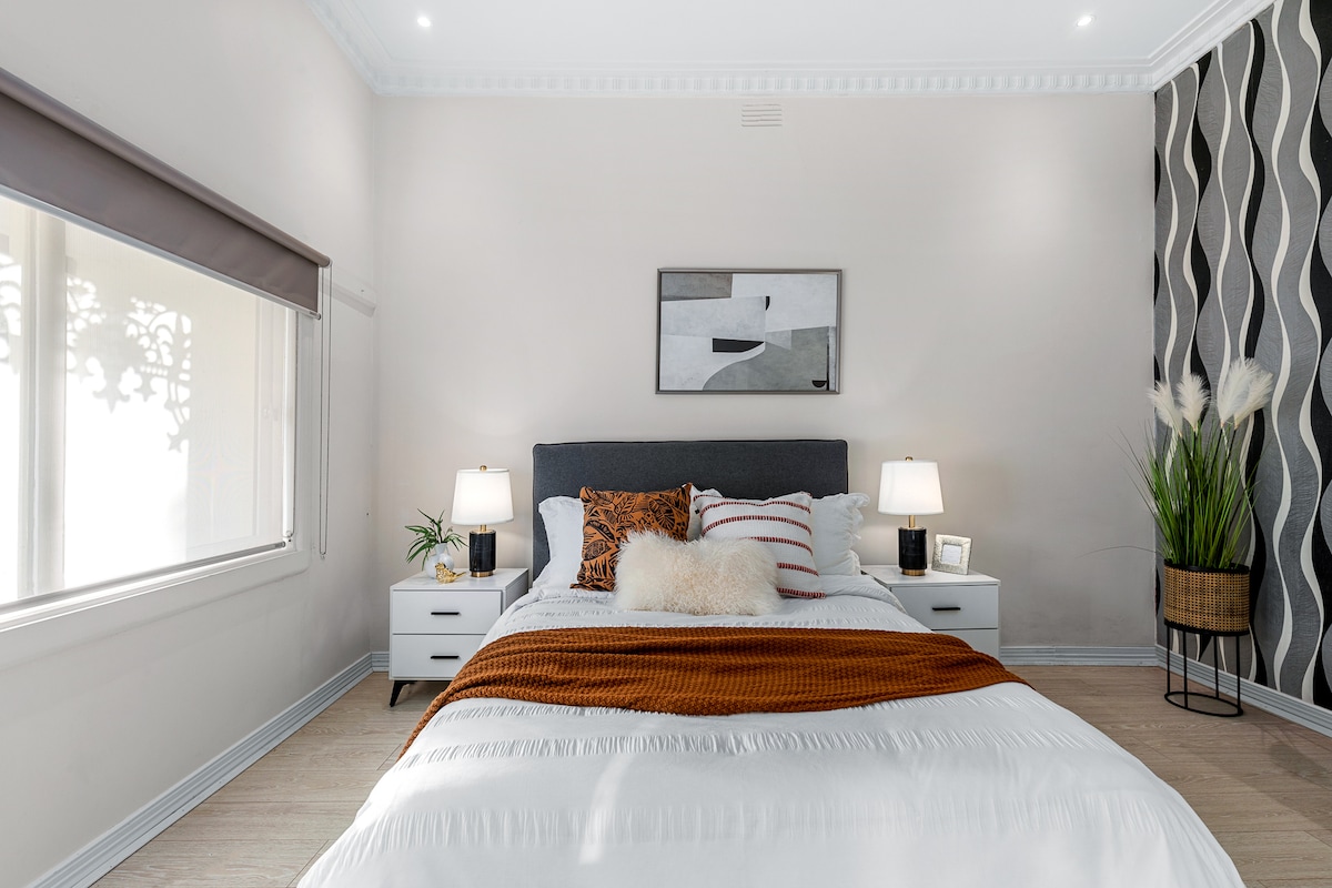 Excelente ubicación, a 4 km del CBD. A un minuto a pie del Royal Park y al transporte público. Pasee hasta el zoológico o el campo de golf Royal Park. Toma el tranvía a través del parque hasta Melbourne Uni.El mercado Queen Vic y el CBD. Cerca de todo lo mejor que ofrece Brunswick. Un bungalow californiano limpio, espacioso y recién renovado en el corazón de Brunswick. Cocina en una cocina moderna o come en el corazón del paraíso gastronómico de Melbourne. Jardín al aire libre, barbacoa, WiFi, Netflix.