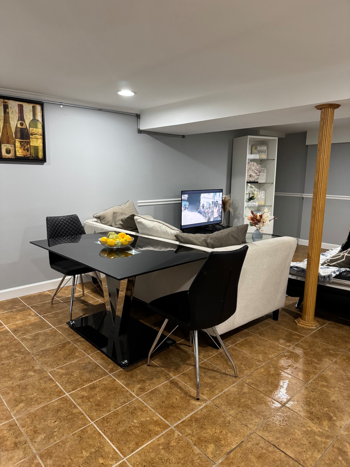 Its coziness will make you feel at home the second you step in. This cute ground floor 280 sq ft Tiny Guest Suite is Fully furnished and nicely decorated - it comes with anything you can possibly imagine. It consist of 1 bedroom 1 bathroom & a kitchen/dining/living room area Rooms' sizes: Bedroom: 10ft x 7 1/2ft LR kitchen DR area: 19ft x 10ft Bath: 40" x 80" Given how close it is from everything - It is perfect for guests who plan on commuting to the city by train or move around by Uber.