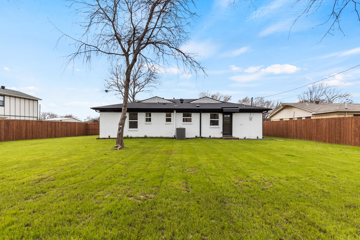 ¡Te damos la bienvenida a nuestro elegante Airbnb con temática de Texas! Con una ubicación céntrica, nuestra elegante propiedad cuenta con una hermosa decoración y muchas comodidades para proporcionarte una estancia relajante. Relájate en la gran habitación con un televisor inteligente de 65 pulgadas, prepara una comida inspirada en Texas en la cocina totalmente equipada o disfruta del gran patio trasero totalmente vallado. Disfruta de una noche de sueño reparador en uno de los cómodos dormitorios. A poca distancia del aeropuerto DFW y de innumerables atracciones, ¡experimenta el encanto y la comodidad del sur en el corazón de Texas!