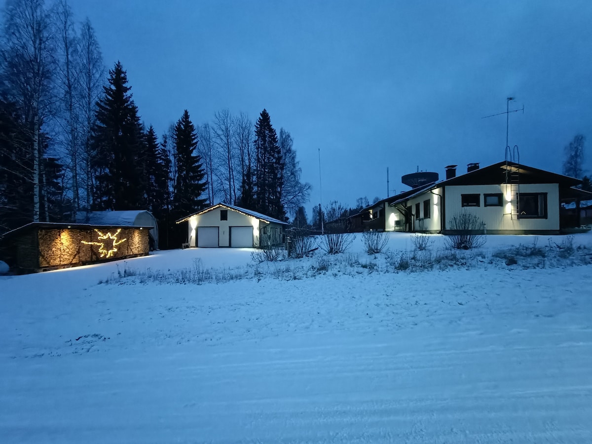 This newly-built guesthouse 2024 with comfortable amenities is located in a the middle of old-growth forests, with a private bay and a calm lake with sunset view. It is a place “to adopt the pace of nature”, with the sound and sight of wild nature. During the winter, a local skiing center with sledding place for kids is open for everyone, about 5km from our place. Also, you can enjoy Sauna, walking in forest, ice-fishing. Relaxing in hot tub in this landscape is truly a unique experience.