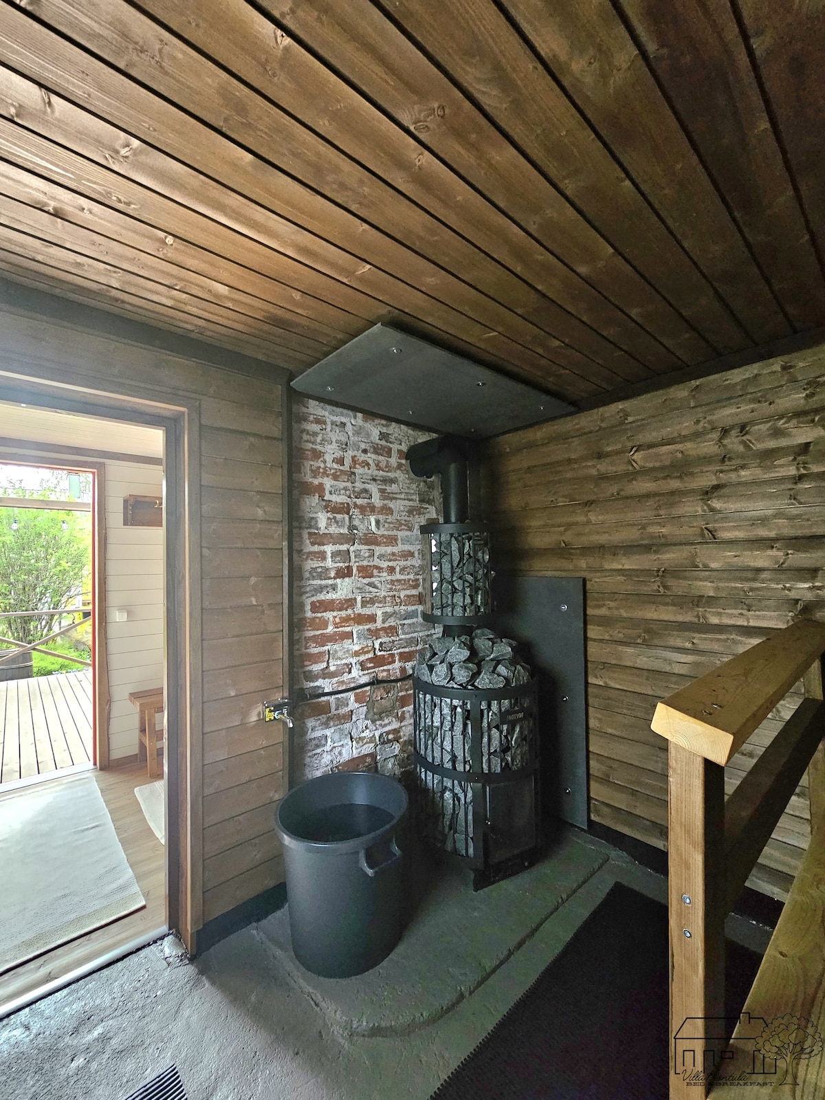 Kanavanrannalla tunnelmallinen ja viihtyisä paikka, jossa voit rentoutua takkatulta tai katon tähtitaivasta katsoen ja pelata monopolia tai lukea. Kesällä voit uida kanavassa tai sup-lautaillaan ja ihailla risteilyalusten ohi lipumista. Jäähdytys hoituu ilmalämpöpumpulla. Sup-lauta on yhdelle hengelle. Täällä saat myös jäätelöt pakkaseen tai grillata terasilla.
