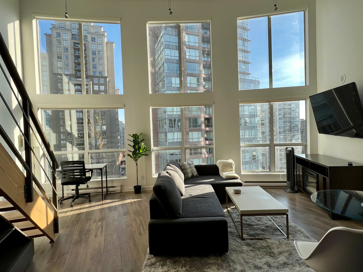 TOTALMENTE AMUEBLADO, APTO PARA MASCOTAS, loft de 1 cama /1 baño con techos de 16 pies en el corazón del centro de Vancouver. ¡1 estacionamiento incluido! Perfecto para profesionales y parejas, este loft totalmente amueblado tiene una ubicación céntrica en el centro de la ciudad a pocos pasos de todo: tiendas de comestibles, cafeterías, tiendas, restaurantes, transporte público, Pacific Center Mall, el malecón, Skytrain, Canada Line, etc. ¡1 estacionamiento y wifi incluidos! Ten en cuenta que este alojamiento se encuentra en el centro del centro de la ciudad, por lo que es un poco más ruidoso.