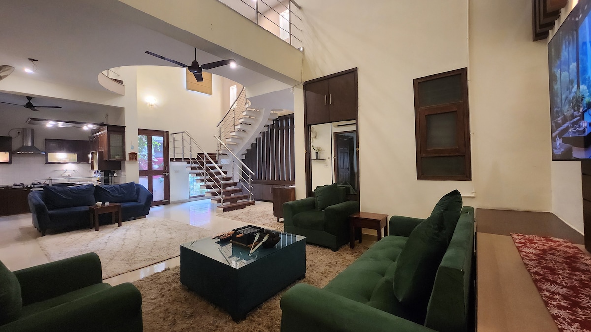 Atención: ¡En temporada alta, el lugar se reserva muy rápidamente! Disfruta de un lujo inigualable en esta exquisita planta de 3 dormitorios del sur de Delhi en una casa, en las exclusivas y cerradas Sainik Farms, ubicada cerca de centros comerciales y la estación de metro Saket. Suelos de mármol italiano a medida del Statuario, muebles hechos a mano y amplios dormitorios con balcones privados. Relájate en baños tipo spa con bañeras, control de clima basado en IA, una cocina modular totalmente equipada y un espacio al aire libre sereno.