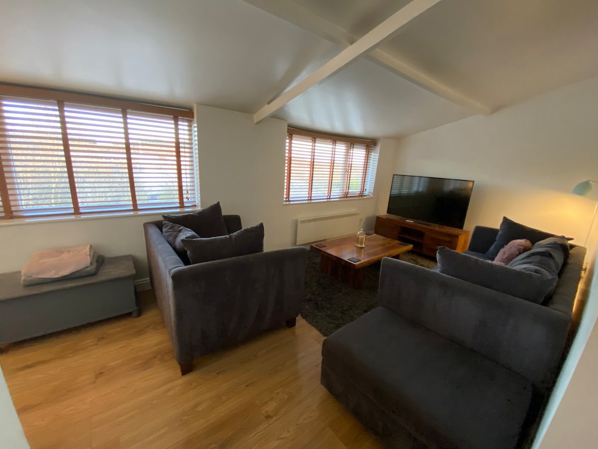 A stunning loft apartment in the centre of a Derbyshire village. Free parking on site and off road parking with private access to your accommodation. A lovely en-suite bathroom with bath and shower adjoins the bedroom and a cosy sitting room beyond. Gastro pubs, bars and restaurants moments from the doorstep. Within easy reach of Alton Towers, Chatsworth, Kedleston Hall, Crich Tramway, and the Derbyshire Peak District.