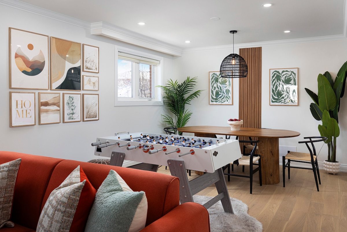 Experimenta la vida de estilo rústico en esta suite renovada, amueblada y espaciosa (~1000 pies cuadrados) en el nivel inferior de una casa de 3 pisos (sótano) en un terreno de barranco en un callejón sin salida privado. - Entrada independiente. - Dos dormitorios: cama tamaño queen + cama doble. - Cocina totalmente equipada, café/té/refrigerios de cortesía. - Aparcamiento gratuito en la entrada. - Televisor de 65 pulgadas con Netflix. - Lavadora/secadora privada. - Ropa de cama, toallas y artículos de aseo limpios. - A pocos pasos del parque/orilla del río, a 10 minutos a pie de Yonge a través del sendero del patio trasero.