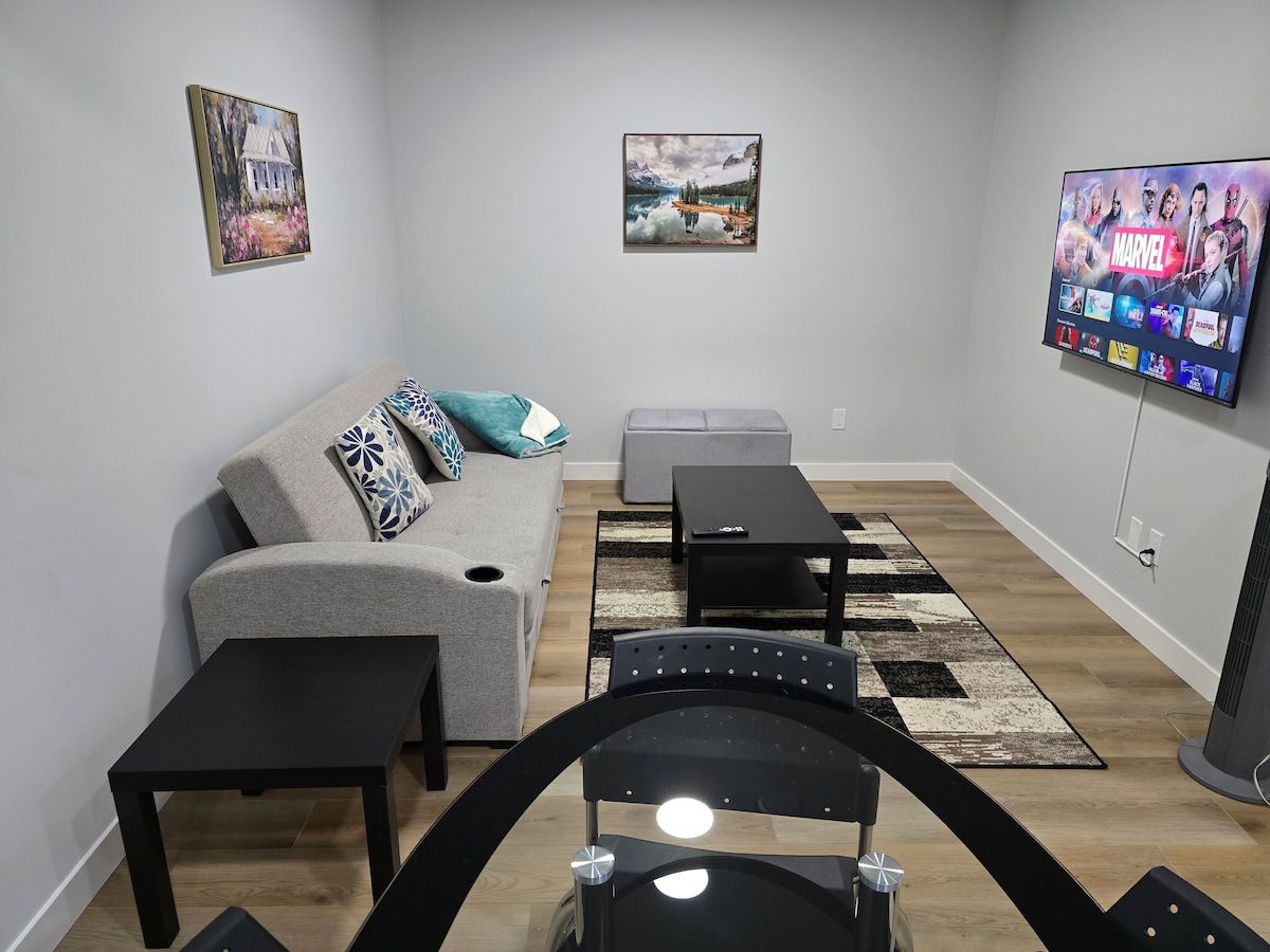 Una nueva suite en el sótano de 800 pies cuadrados en el barrio sereno y seguro de Crystallina Nera East. Crystallina Haven ofrece fácil acceso a todos los servicios principales, a 3 minutos de la autopista Anthony Henday, a 2 minutos de Starbucks y metro, a más de 20 minutos del centro. Las características incluyen 1 dormitorio, sofá cama, oficina separada con silla ergonómica, entrada lateral privada con cerradura inteligente, wifi de alta velocidad, Netflix, Disneyplus+, video Prime, PlutoTV, lavandería y termostato en la habitación para ajustar la temperatura para tu comodidad.