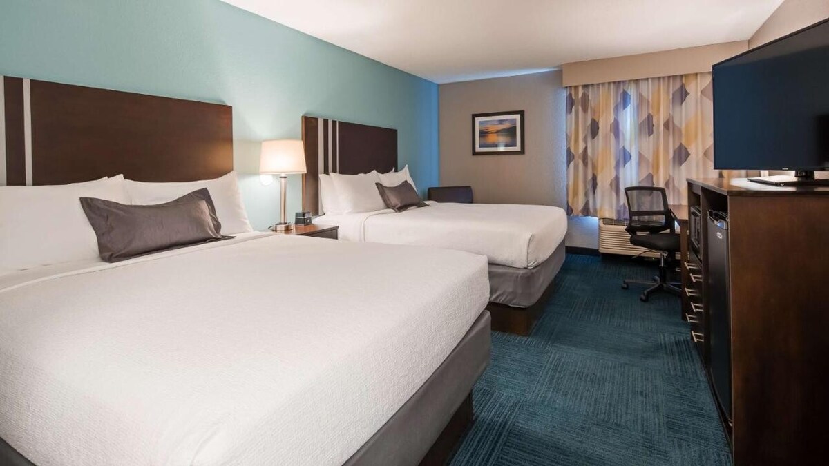 Sleep under the stars — almost! Our Patio Suite features three queen beds and all the comforts of our standard Explorer rooms, plus your own private back patio for morning coffee or evening relaxation. This spacious suite sleeps up to 6 guests and includes a mini-fridge, microwave, coffee maker, TV, fast Wi-Fi, and keyless entry. Perfect for families or groups who want a little extra space to unwind after a day at Cedar Point or on the lake.
