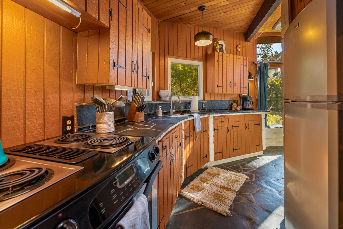 Bungalow con vista al mar, cerca de la playa. Casa de playa de dos dormitorios y 2 baños con terraza con vistas al mar y barbacoa para un máximo de 4 personas. Dos encantadores dormitorios en suite con grandes vistas al mar. Disfruta de películas en streaming en Roku TV, juegos de mesa y noches acogedoras junto a la chimenea de gas. A solo 10 minutos a pie de Cove Beach, Gyppo Brewery, el campo de golf Shelter Cove y la pista de aterrizaje de Shelter Cove. Se admiten mascotas.