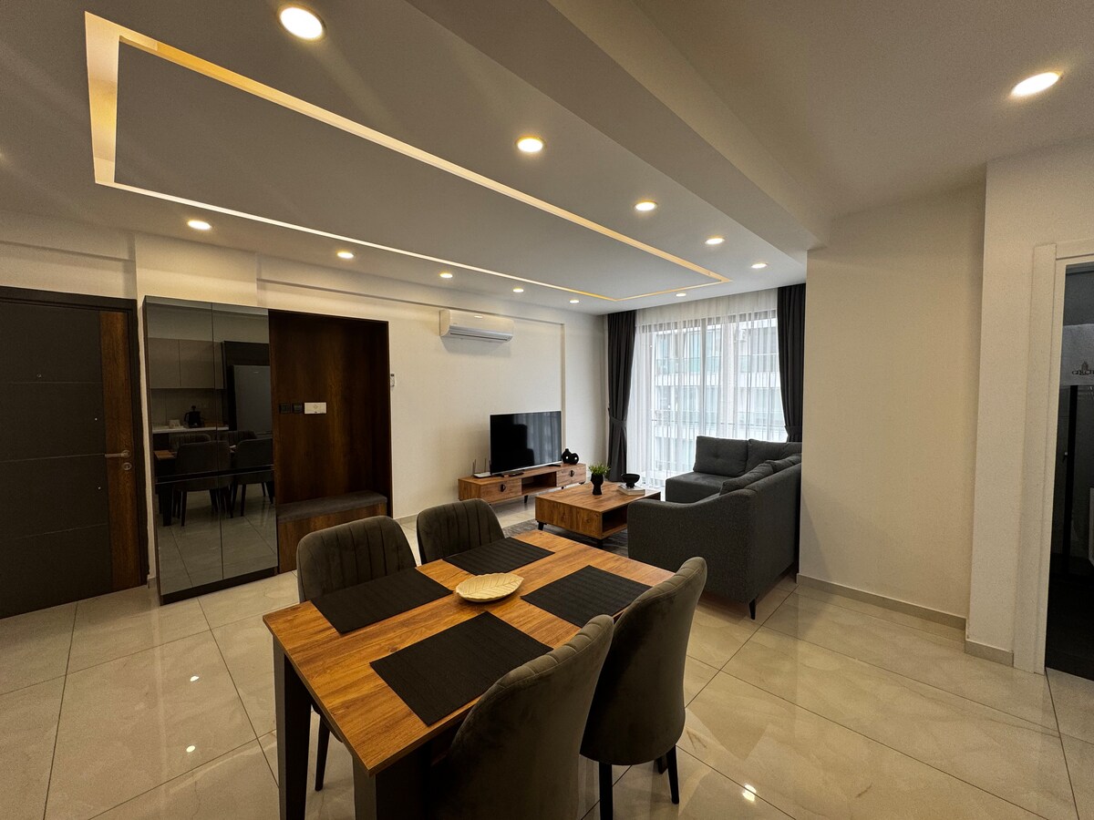 Área de🏡 alojamiento Nuestro moderno apartamento 2+1 de nueva construcción está ubicado en el corazón del centro de la ciudad de Kyrenia. Ofrece una estancia cómoda con amplios espacios de estar, muebles modernos y decoración elegante. 🏡 El espacio Nuestro apartamento moderno de 2 dormitorios de nueva construcción está ubicado en el corazón de Kyrenia. Las amplias salas de estar, los muebles elegantes y la decoración de buen gusto ofrecen una estadía cómoda.