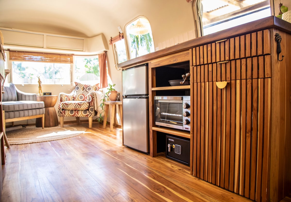 Hay algo muy especial y aventurero en alojarse en un Airstream Argosy vintage de 1967. Aunque está estacionaria, parece que se aleja en cualquier momento para vivir una experiencia de viaje inolvidable. Una caravana acogedora, creativa y minimalista puede ser la opción perfecta incluida en tu viaje en Costa Rica. Vivir en un espacio pequeño no significa tener límites de espacio, sino inspirarse en un diseño atrevido, trucos inteligentes y pasar más tiempo en conexión con la naturaleza.