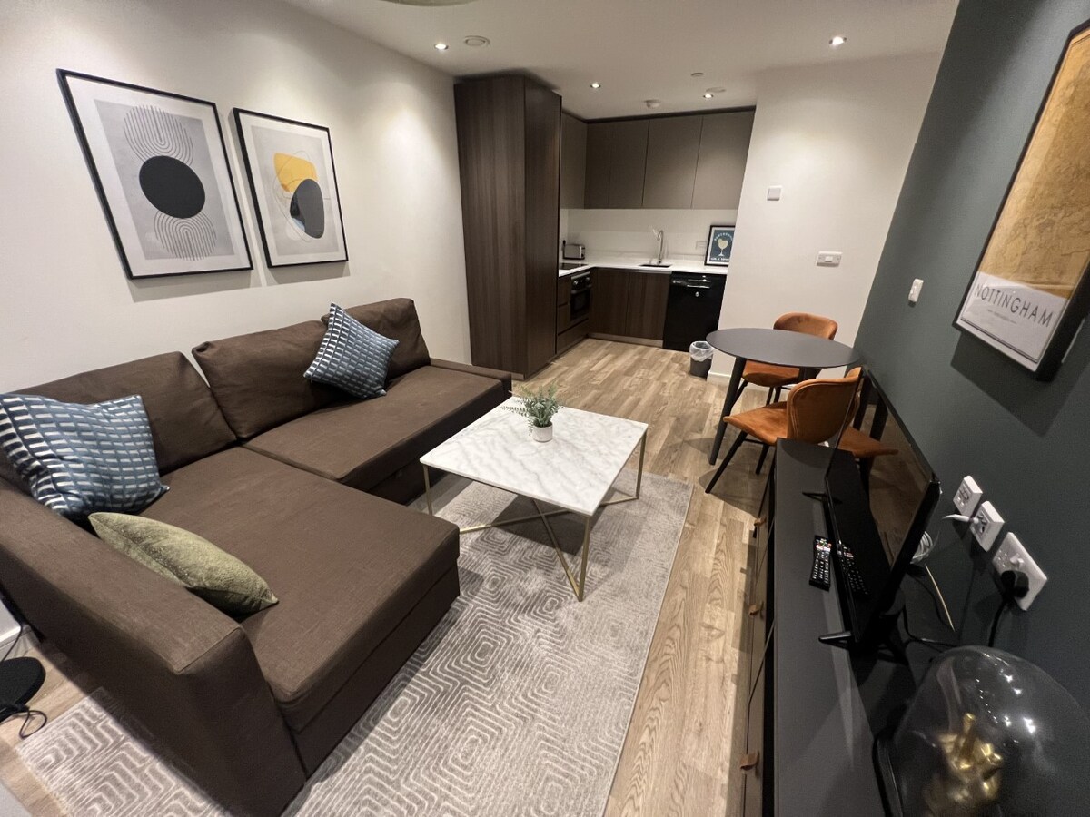 Stay in a large one-bedroom apartment in Nottingham City Centre offering comfort, privacy, and rare extras - including free secure underground parking, fast private Wi-Fi, and on-site gym access. Ideal for short stays, business travel, couples, or small families, this modern apartment is set in a secure building with lift access and is surprisingly quiet for a central location. • Spacious 1-bed apartment • Prime Nottingham City Centre location • Free secure parking • Fast private Wi-Fi