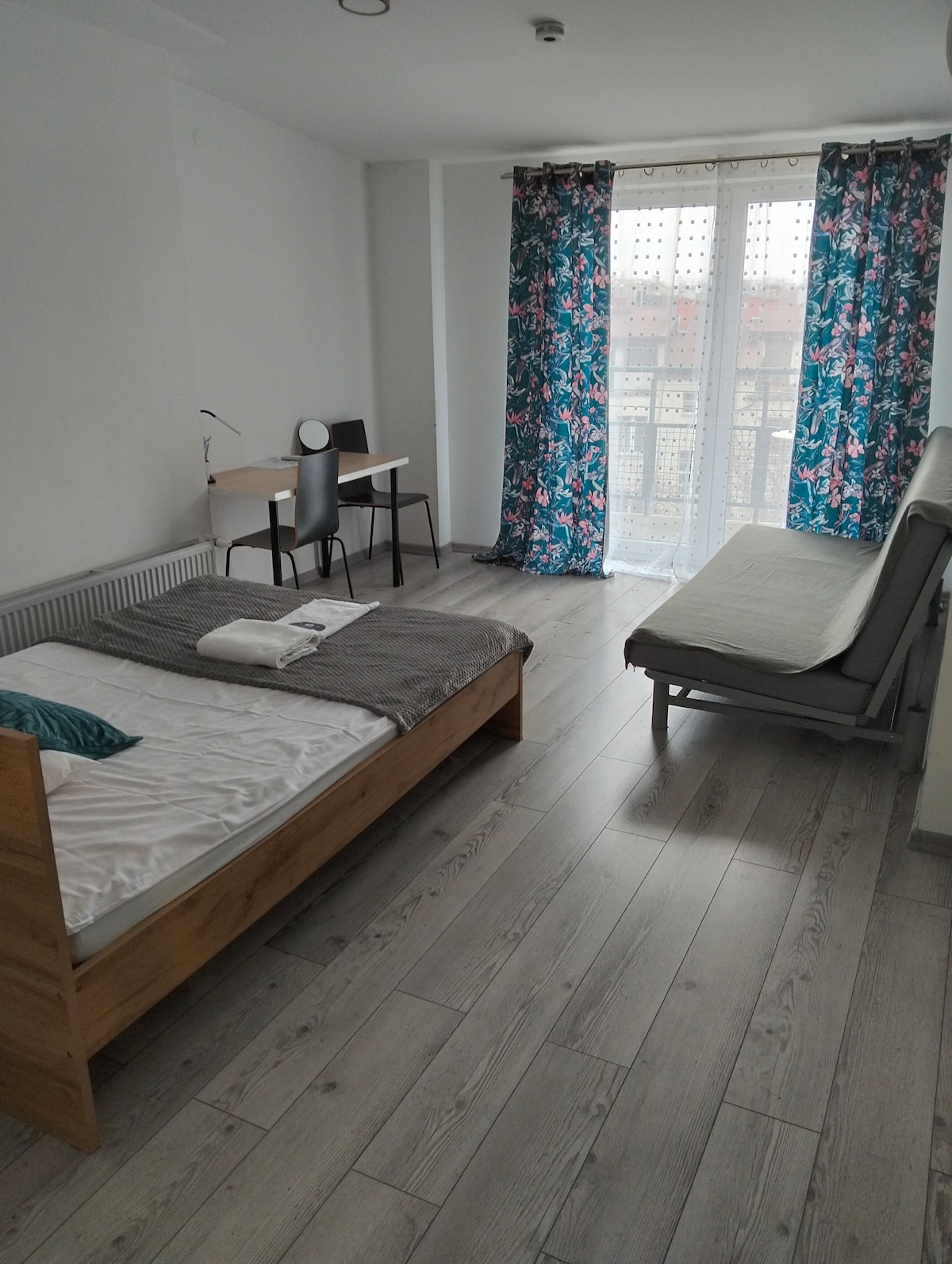 Te invito a un apartamento moderno situado en una zona tranquila, a menos de 4 km de la plaza del mercado principal. El apartamento tiene un dormitorio, un gran armario, una cocina conectada con el salón, un baño, un jardín y una plaza de aparcamiento. El aire acondicionado te refrescará en los días cálidos y la calefacción por suelo radiante te calentará en las tardes de otoño e invierno. La cocina está preparada para comidas dignas de MasterChef: placa de inducción, horno, microondas, cafetera, hervidor y lavavajillas esperan tus conquistas culinarias.
