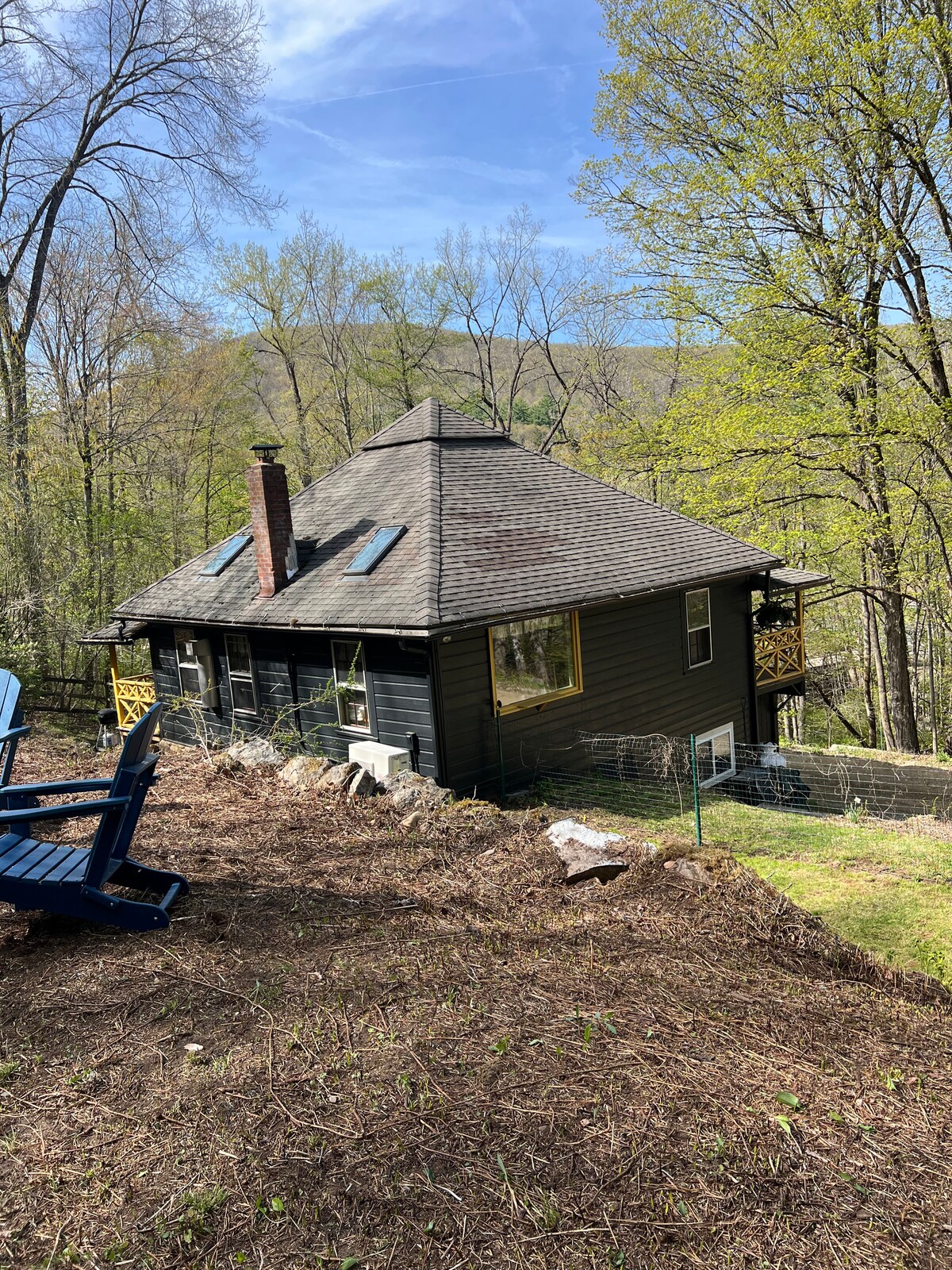 ¡Serena cabaña rústica en Colebrook, Connecticut, en el hermoso condado de Litchfield! Acogedora cama tamaño king debajo de la claraboya, tamaño queen en la planta baja, estufa de leña y todas las comodidades de casa. Estanque limpio y puro: ¡nada, pesca, canoa y kayak! Se encuentra lejos de las carreteras principales en una tranquila carretera secundaria. Puedes caminar, correr o andar en bicicleta por los senderos locales o quedarte y caminar por el sendero alrededor del estanque, ¡hacer fogatas afuera en la chimenea! Limpiado por mí, sin reglas locas. ¡Rodeado de naturaleza! Privado ¡Gran WIFI! ¡Cerca de estaciones de esquí, dispensarios y los increíbles Berkshires!