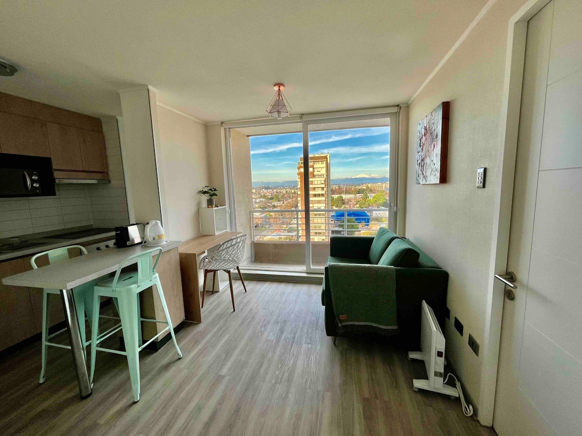 Moderno departamento estilo minimalista, de un ambiente, ubicado en pleno centro de Chillán. Totalmente equipado ideal para quienes buscan comodidad, tranquilidad y conectividad. A dos cuadras del mall Arauco Chillán, plaza de armas, catedral, cercano a bancos, variedad de restaurantes, supermercados, terminal de buses, locomoción a la puerta y otros servicios esenciales. Cuenta con WiFi, Smart TV de 40’ con Netflix, Disney, Max y canal del fútbol TNT sport, lavandería, gimnasio y sala cowork.