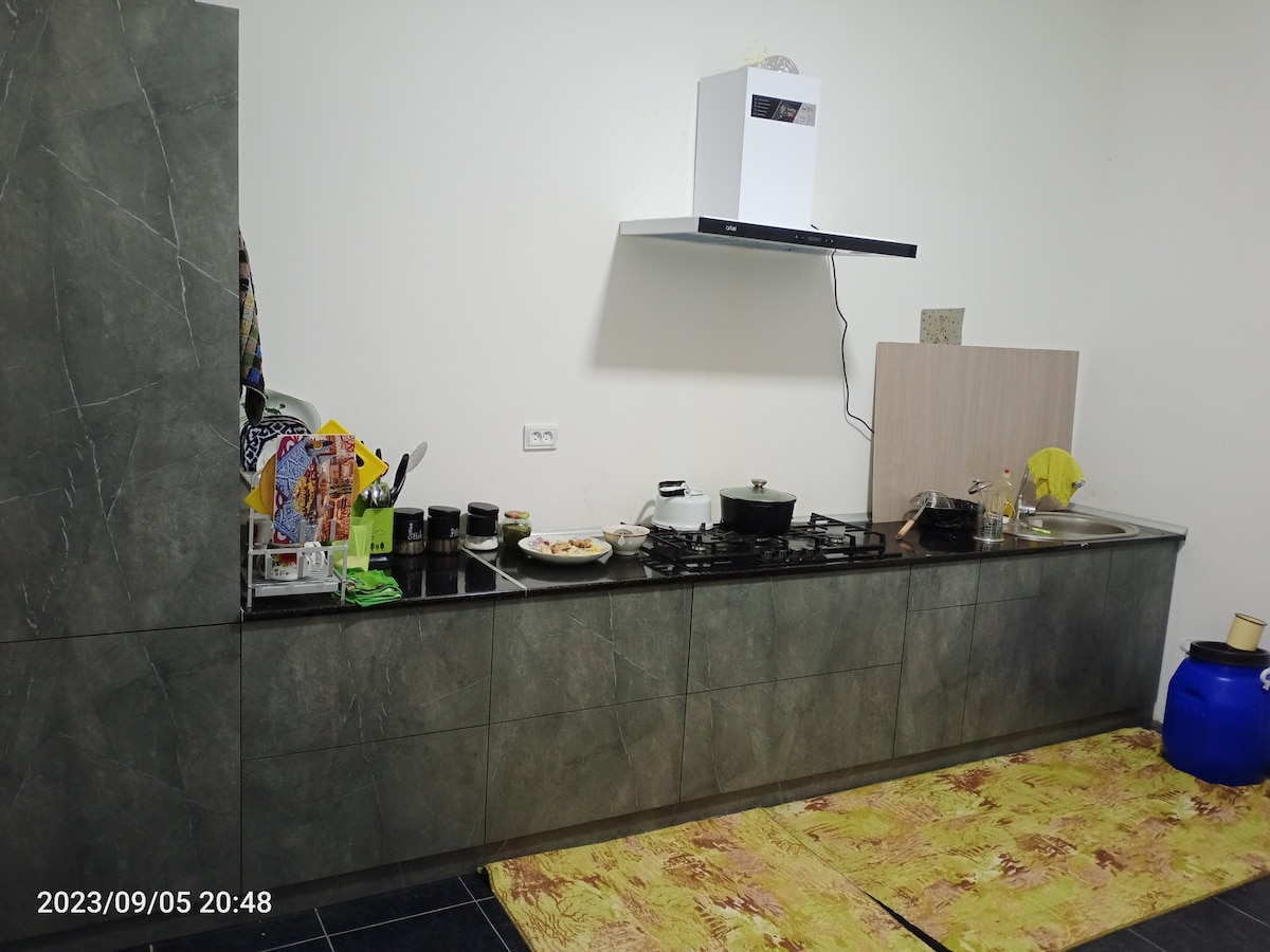¡Te damos la bienvenida a tu refugio privado en Nukus! Amplia casa privada de 130 m² en Nukus con 3 dormitorios, 5 camas y 2 baños, perfecta para un máximo de 6 adultos. Disfruta de una cocina completa, lavadora y una acogedora zona de televisión para relajantes noches. Sal al patio de tu jardín privado, ideal para tomar un café o relajarte después de explorar la ciudad. Ubicación tranquila pero cerca del centro y del Museo Savitsky. Ideal para familias, amigos o viajes de negocios.