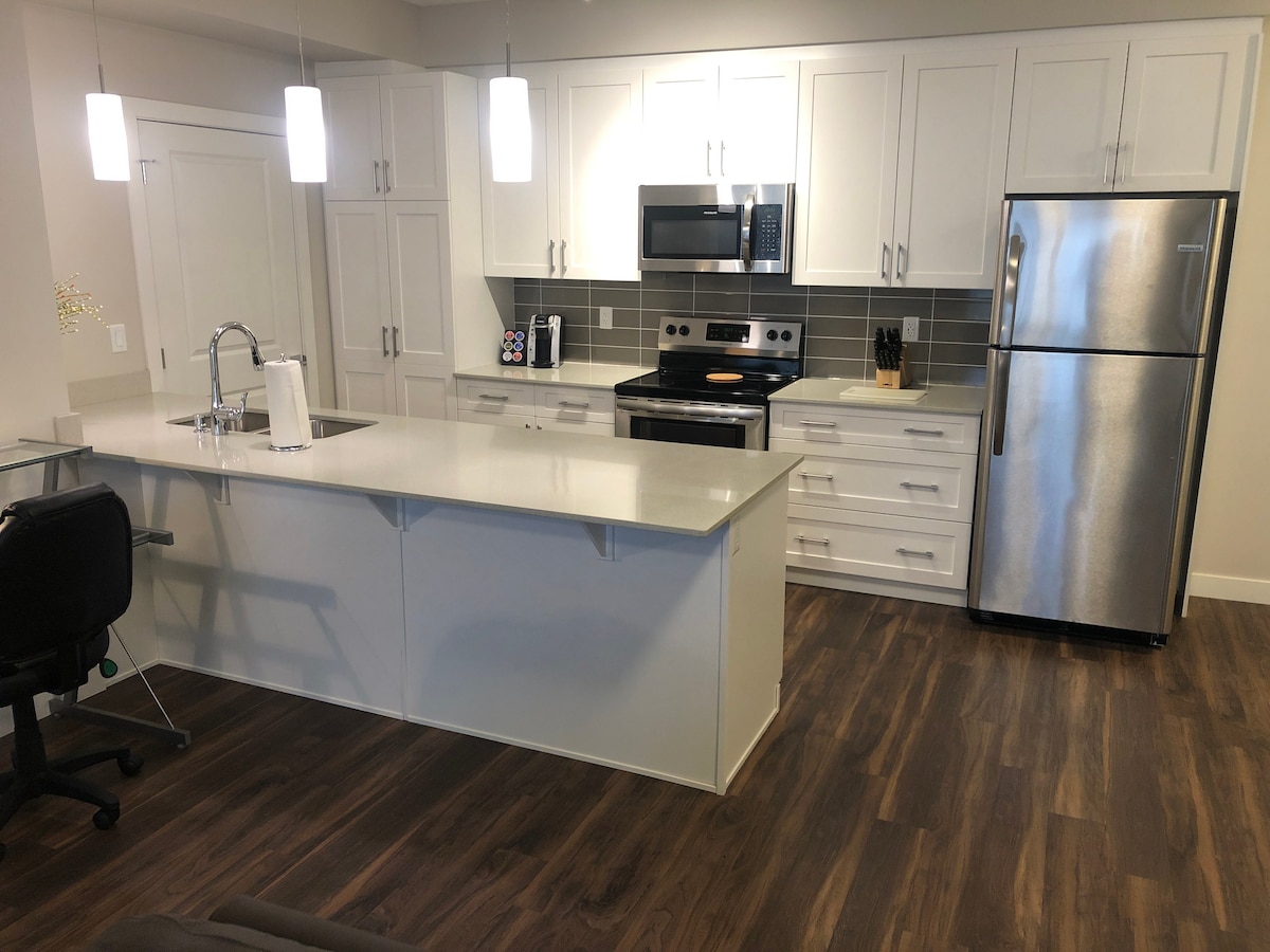 Este moderno apartamento de nueva construcción está ubicado en Parsons Creek, North Fort McMurray. Tu espacio relajante lejos de casa es luminoso, espacioso y con todas las comodidades. Esta suite está muy bien decorada, con wifi de alta velocidad, TV por cable y Netflix. La cama tamaño queen de alta calidad puede alojar cómodamente a un solo ocupante o a una pareja. El dormitorio grande y tranquilo tiene un amplio vestidor. La lavandería es cómodamente privada y está en la suite. Hay aparcamiento gratuito disponible en la parte trasera o en la calle.