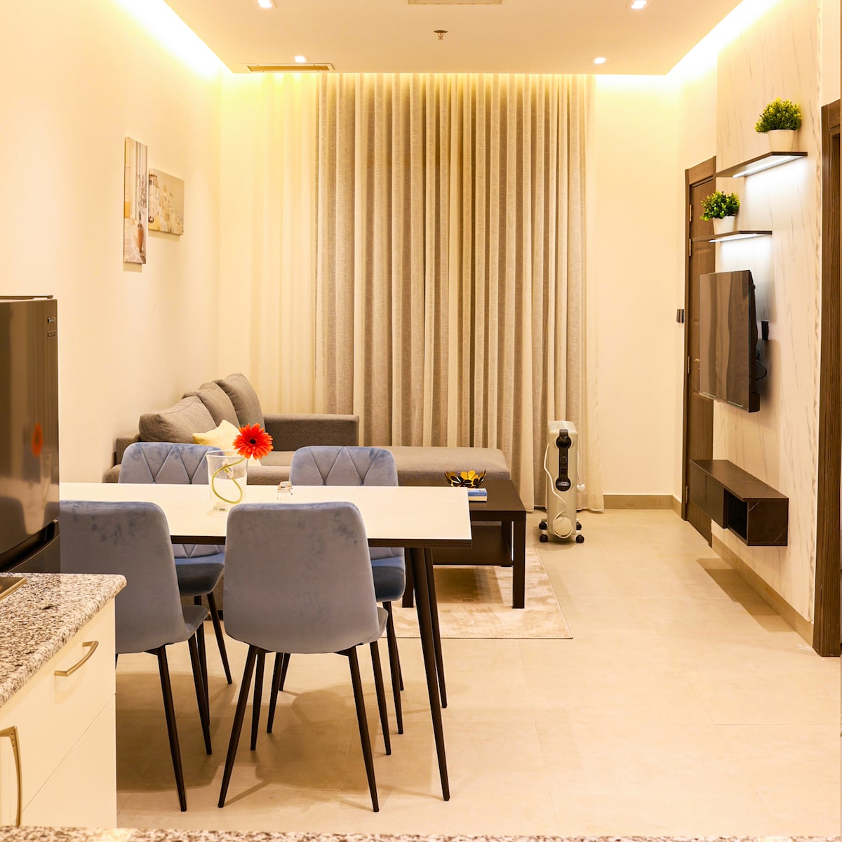 💎Self Check in fully furnished apartment in Salmiya 💎5G ultra speed WiFi 💎Philips Hue color light with mobile app 💎Self Check-In with Electronic lock 💎55’Smart TV / Bluetooth Sound bar 💎50”TV in Bedroom 💎Netflix,OSN, Prime, ZeeTV,SDisney 💎Toiletries & bath towels provided 💎Cable free mobile chargers 💎Dr. Vranjes luxury oil diffuser