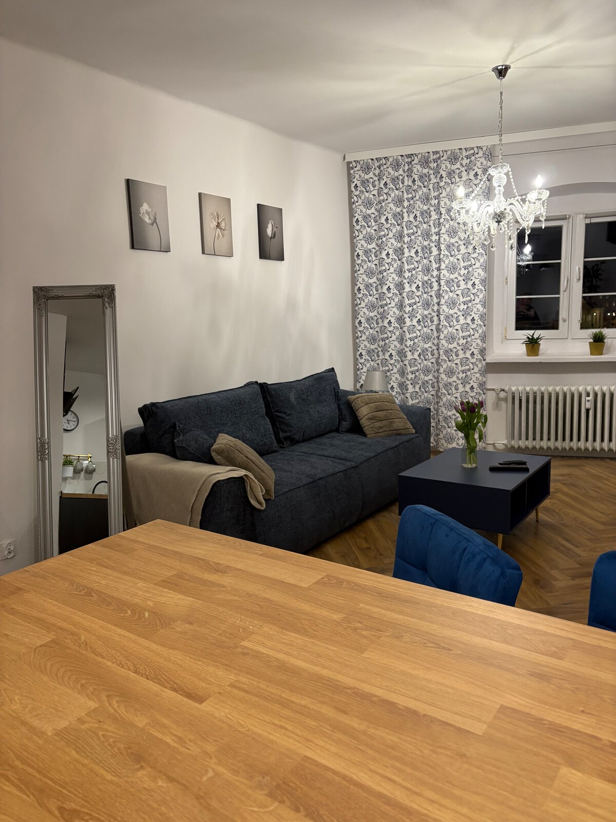 El apartamento es un apartamento independiente en el primer piso de una casa unifamiliar. Consta de un dormitorio con una cama doble, otro dormitorio con dos camas individuales, una sala de estar con un sofá, una cocina totalmente equipada y un baño. La casa está en el barrio residencial de Kłodzko, a 2,5 km de la plaza del casco antiguo.