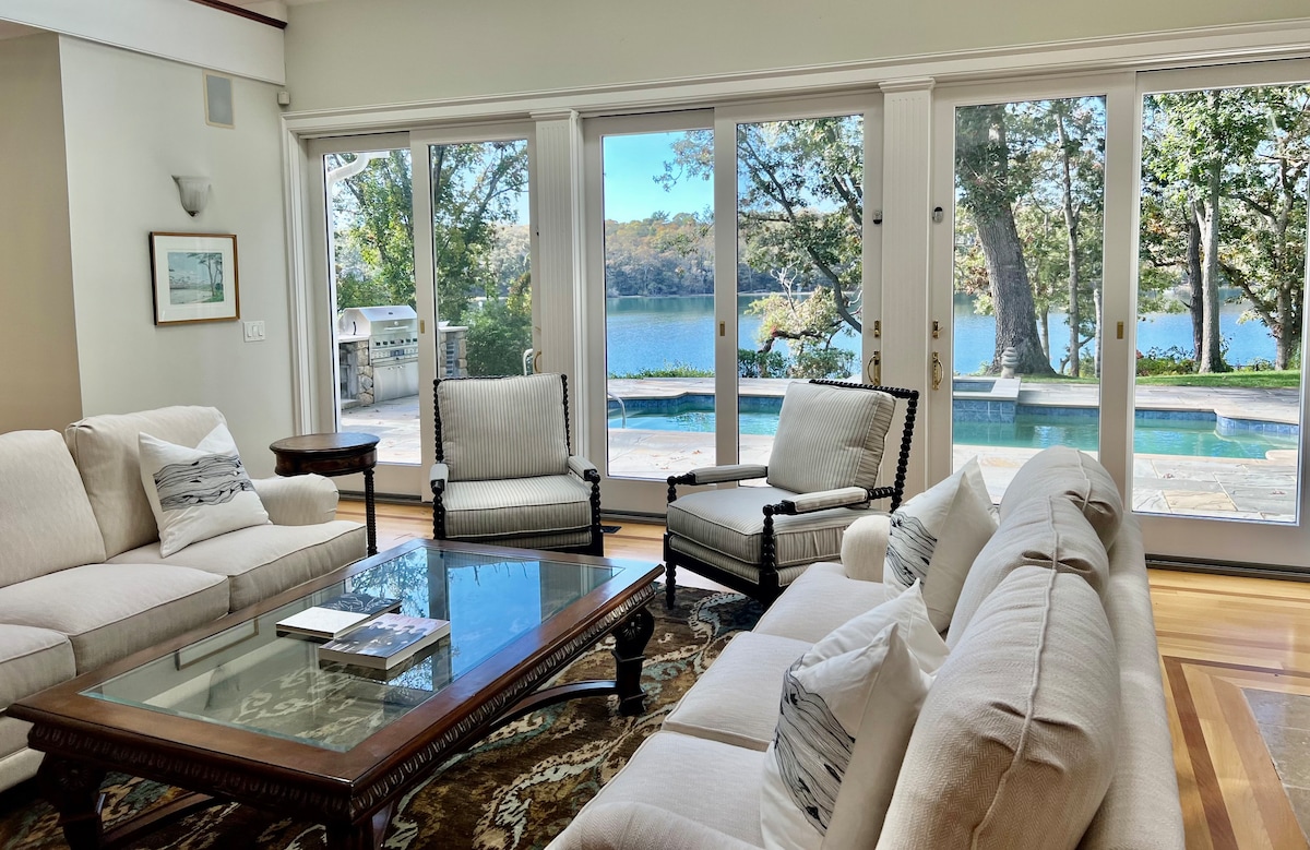 Cerca del aeropuerto, te encantará la playa del patio trasero, la vista al agua, la piscina/patio de césped, el ambiente y el espacio al aire libre. ¡Playa y piscina (LA CALEFACCIÓN DE LA PISCINA COMIENZA EN VERANO Y TERMINA EL 1 DE SEPTIEMBRE) es una combinación difícil de encontrar! La ubicación es privada, pero está cerca de las 3 ciudades más grandes de Martha's Vineyard. Ideal para parejas, familias (con hijos) y grupos grandes. ¡Disfruta de la cena con el sistema de música Sonos interior/exterior durante una hermosa puesta de sol! NOTA: ¡Aumento de tarifa en temporada alta, la piscina/spa es una unidad combinada y SOLO se calienta en verano!