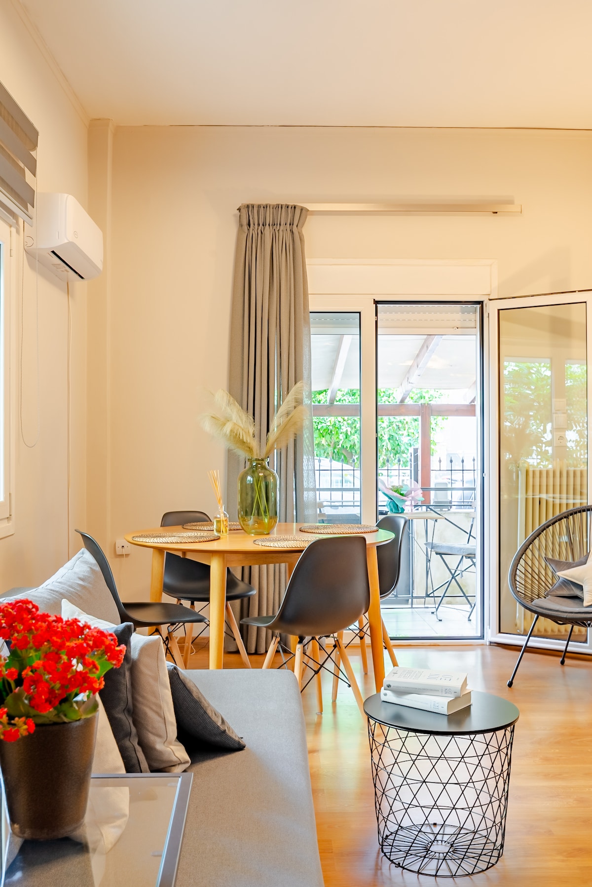 Un ático de estilo real verdaderamente único a solo 8 minutos del aeropuerto de Atenas. Al igual que un museo privado, cuenta con antigüedades, camas extragrandes de 200×220, una gran terraza privada y acceso a la azotea para disfrutar de vistas panorámicas y avistamiento de aviones. Ideal para familias, con mucho espacio y carácter que no encontrarás en ningún otro lugar de la zona. Las puertas de vidrio inundan el espacio con luz natural y enmarcan el cielo abierto, una estancia única que combina el encanto clásico con las raras vistas de la ciudad.