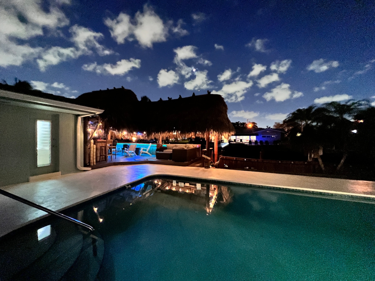 Experimenta una relajación completa en nuestra casa de estilo isleño. Situado en el centro de Pompano Beach, junto a Ft Lauderdale, a 2 millas de la playa. Enamórate de sentarte en el muelle mientras pasan los barcos, balancearte en la hamaca, ver el partido afuera mientras asas, pasar el rato en sillones huevo sobre la piscina o sentirte ingrávido en el jacuzzi. Kayaks gratuitos para tu uso, la casa está ABASTECIDA con suministros, internet de alta velocidad, TV Roku de 50 pulgadas en todas las habitaciones. ¡Consigue la MEJOR experiencia de Florida aquí mismo!