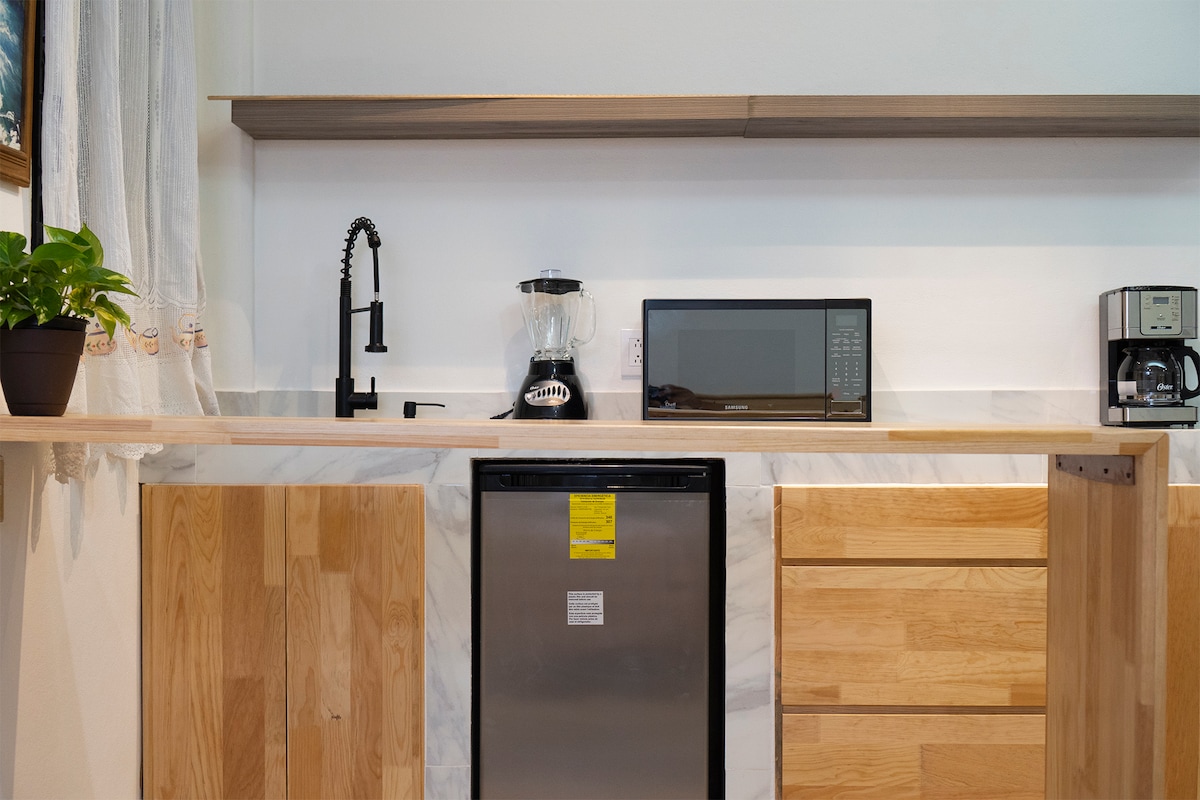 Disfruta del fácil acceso a todo desde este alojamiento perfectamente ubicado y que brinda una estancia tranquila y confortable. El departamento tiene en la planta baja la estancia con sillón, mesa de comedor para dos personas, cocina y baño completo con regadera; escaleras tipo caracol para subir a la planta, donde se encuentra la recamara con cama, closet, aire acondicionado y cortinas blackout, desde ahí se accede a la terraza semi-privada con dos sillas para exterior y sombrilla.