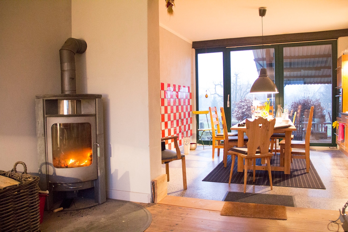 Antigua granja histórica de 1880 modernizada. Situada en el idílico paisaje rural de la región de los lagos de Sternberg. Pura relajación con toda la familia en esta casa rural pero moderna de 130 metros cuadrados con wifi, chimenea, calefacción por suelo radiante, 2 baños, lavadora, juguetes y un gran jardín a partir de 2025 con sauna para los niños. Escalera con seguro de escalera.