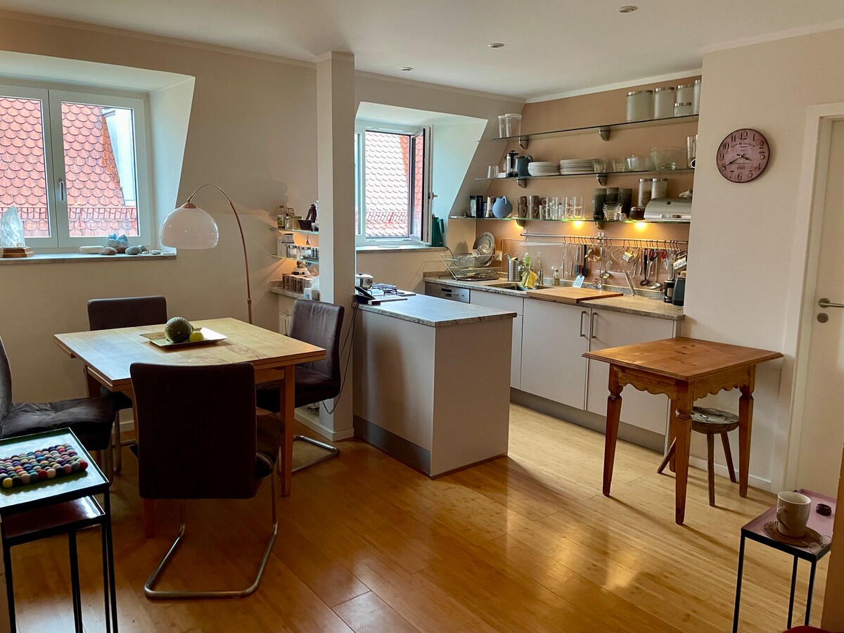 Es un apartamento ático de 80 m² en 2 niveles (1er piso: pasillo, armario, armario empotrado, cuarto de ducha/WC, 2do piso: loft con cocina completa, bar, mesa de comedor, sofá (o sofá cama), escritorio, chimenea, cama doble, baño (WC/bañera/lavadora) y cama plegable si es necesario. Monoblock Klimabox. Zona residencial tranquila del vecindario justo al borde del bosque. El estacionamiento siempre es fácil en todas partes. S-Bahn a 7 minutos a pie o 1 minuto en autobús. A 15 minutos en auto de Marienplatz.