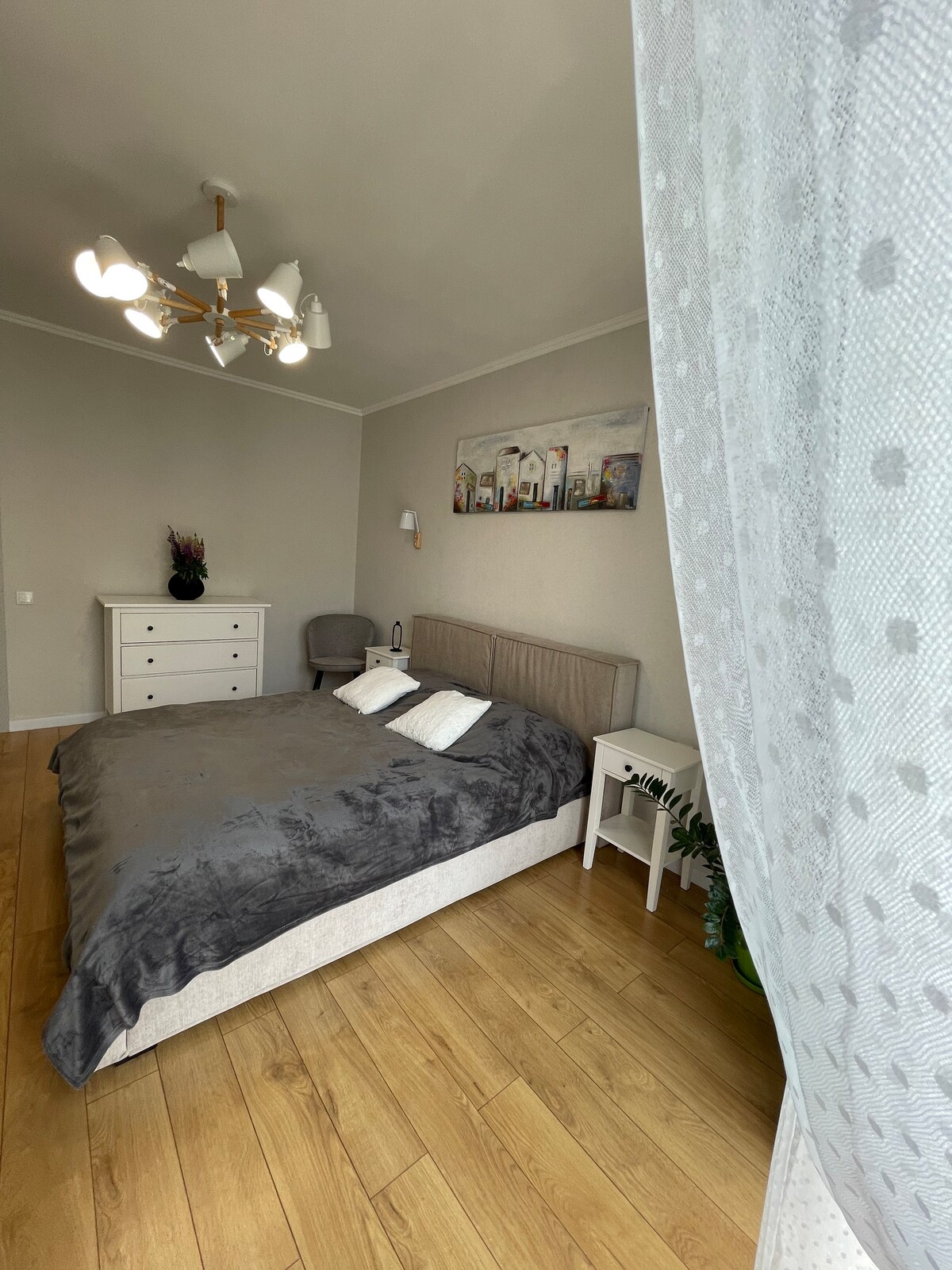 Un departamento con renovación de autor, una casa con un territorio cerrado bajo seguridad las 24 horas, cerca del lago de la ciudad y un parque, a 5 minutos en auto a un centavo. Junto al departamento hay un supermercado de infraestructura desarrollado, muchas pequeñas tiendas, farmacias y cafés. El apartamento tiene todo lo que necesitas para vivir: una cocina grande, bañera, inodoro, secador de pelo, nevera, lavadora, microondas, hervidor eléctrico, estufa, platos, una cama doble con colchón ortopédico, un sofá plegable de 2 dormitorios, toallas, wifi, suelo radiante.