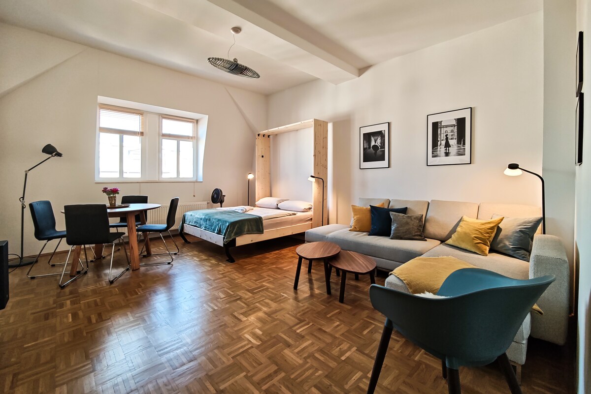 En el patio de nuestra casa de estilo modernista hemos preparado este pequeño alojamiento para ti. A través de la gran entrada de la casa principal se llega al patio con casita, que solo utilizaréis vosotros. Allí también hay un baño muy pequeño y una pequeña cocina con nevera a vuestra disposición. La terraza se puede utilizar en verano, por ejemplo, para desayunar al sol.